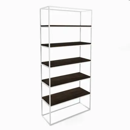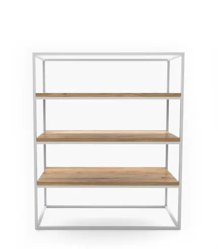 Kompakt åpen reol med tre trehyller og svart metallramme – modell NEWTOWN MINI