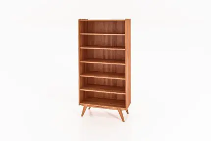 RETRO reol i massivt oljet tre med seks hyller og karakteristiske skrå ben. Designet av Windes | Lines.