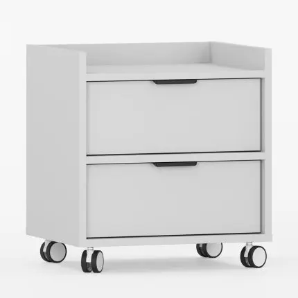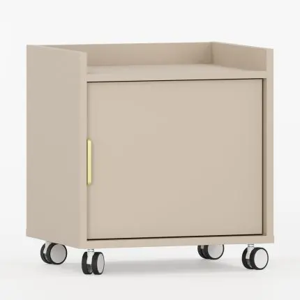 Skap med hjul SIGI i kasjmirfarge med åpen hylle og skuff.