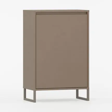 Skap med én dør og slanke metalben.