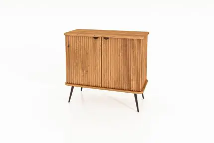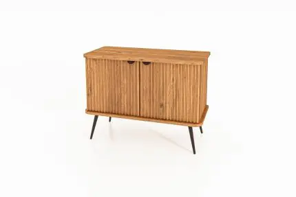Skap KULA i oljet tre med to riflede dører og svarte håndtak – løftet på slanke svarte metalben.