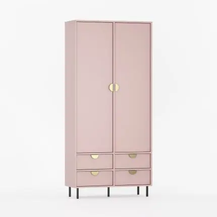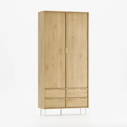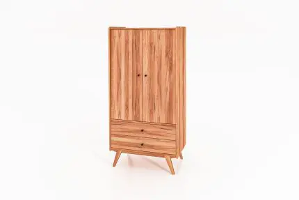 RETRO garderobeskap i oljet tre med to dører og to skuffer – med skråstilte ben og harmonisk form.