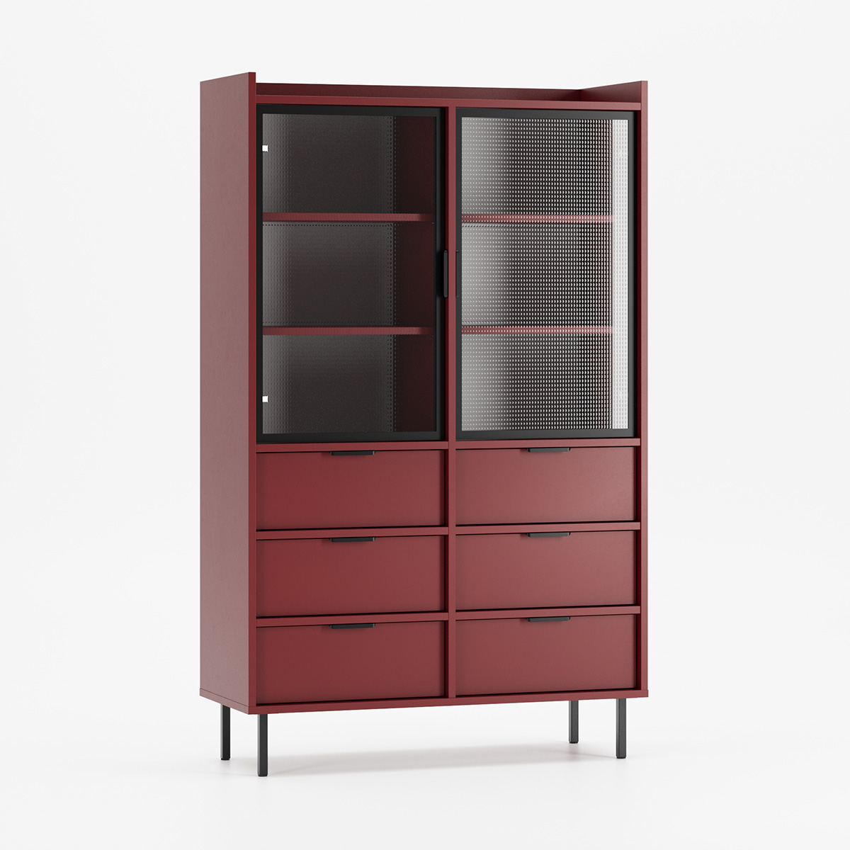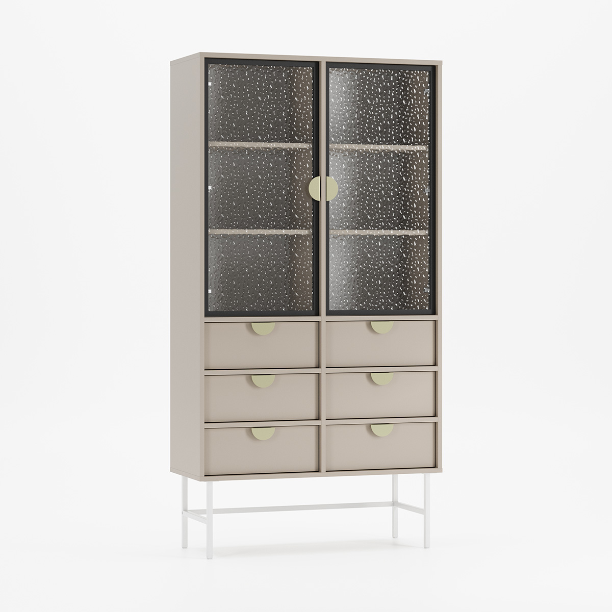 Klare glassdører gir en lett og luftig atmosfære, der gjenstandene dine fremstår elegante. Samtidig gir den solide rammen en tidløs struktur. Hver detalj – fra håndverk til tilpasningsmuligheter – er laget for å komplementere hjemmet uten å dominere.