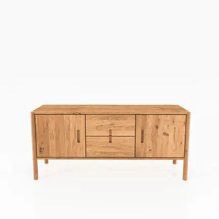 Skjenk POLA i massivt tre med slanke ben, to dører og to skuffer med freste håndtak.