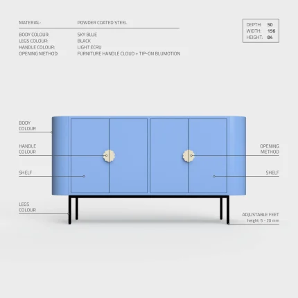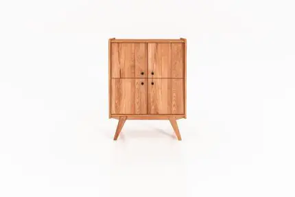 Skjenk POLA i massivt tre med slanke ben, to dører og to skuffer med freste håndtak.