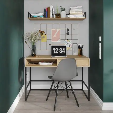 Skrivebord med en praktisk skuff og minimalistisk ramme.