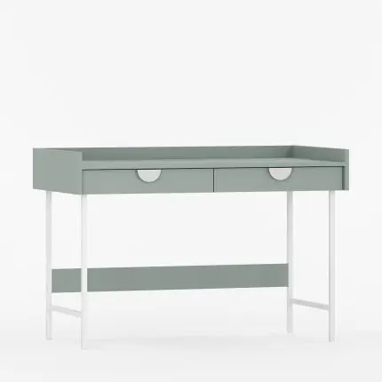 Elegant skrivebord med to skuffer og en kant.
