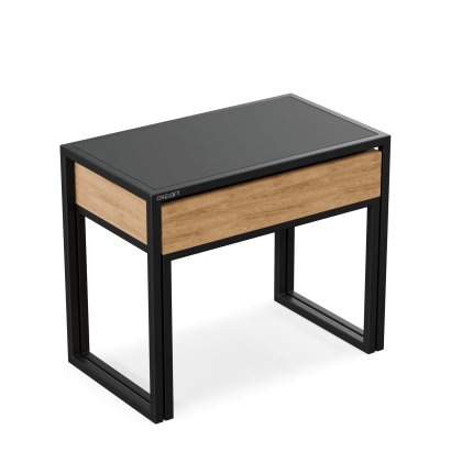 Sofabord med mørk rektangulær bordplate og åpent C-formet stativ i svart metall – minimalistisk og industrielt.