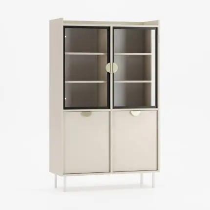 Vitrineskap med glassdører og romslig oppbevaring