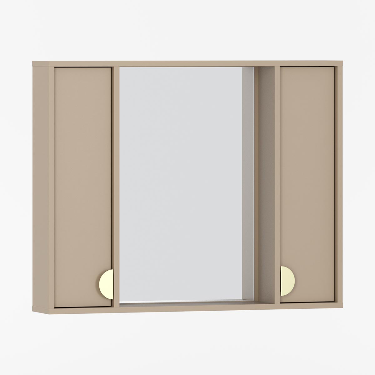 SIGI WSLL02 er et funksjonelt veggmontert møbel som matcher dagens innredningstrender. Med innebygd speil, åpen hylle og to sideskap med flyttbare hyller gir det god plass til oppbevaring og utstilling av kosmetikk og baderomstilbehør.