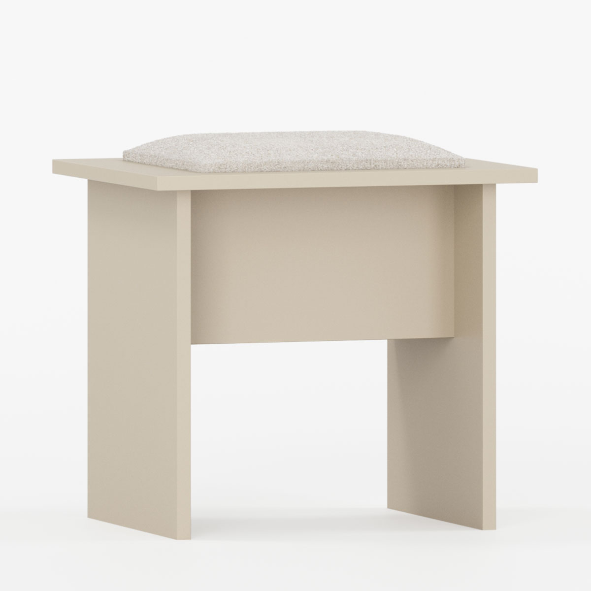 Setet er utstyrt med en myk, polstret pute i en harmonisk kvadratisk form, som gir bĂĄde komfort og et balansert uttrykk. Den solide basen gir stabilitet, mens proporsjonene fremhever enkelhet og funksjon.