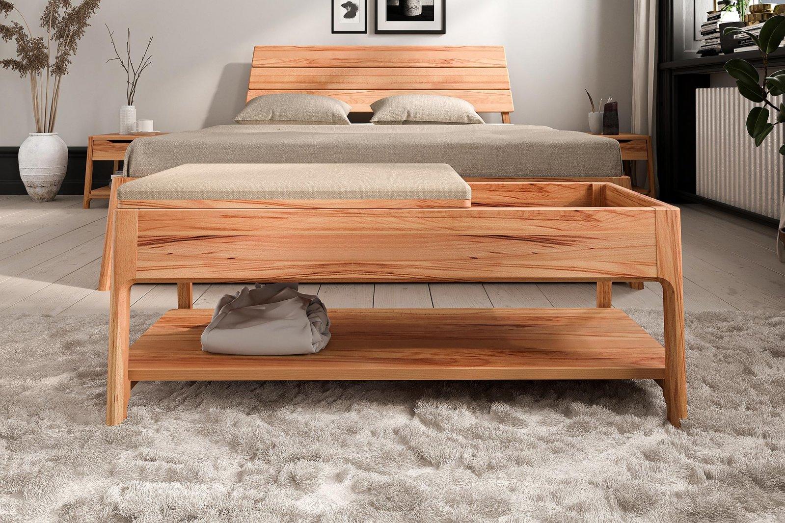 Møbler fra The Beds er laget i massivt tre – et materiale som bærer med seg naturens historie. Hver planke er unik, med sin egen struktur, farge og åreretning, og utvikler seg videre med tid, lys og klima. For å bevare skjønnheten anbefales jevnlig pleie med naturlig olje eller lakk, avhengig av behandling.
