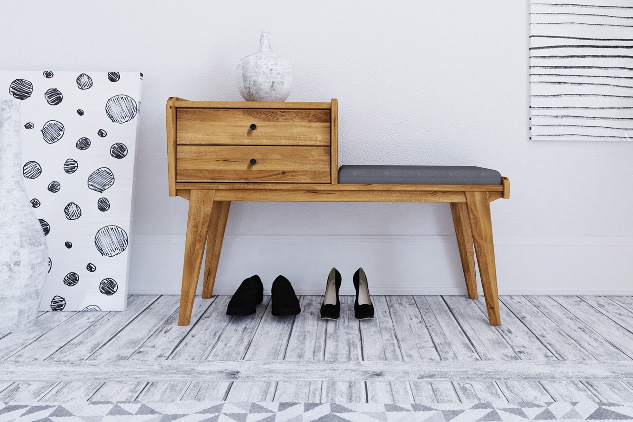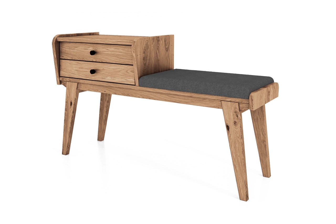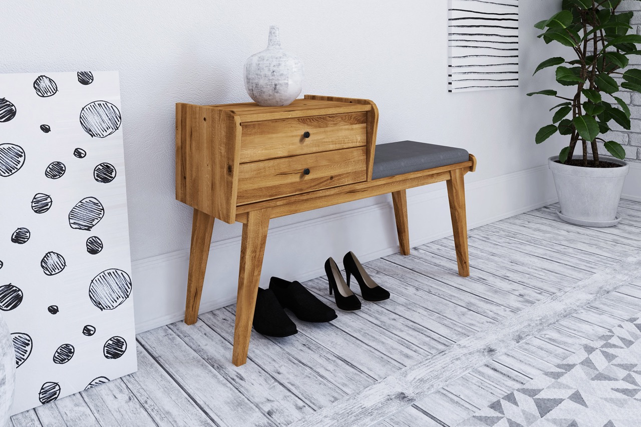 Entrébenk RETRO – Benk med skuffer og polstret sete, i massivt tre
