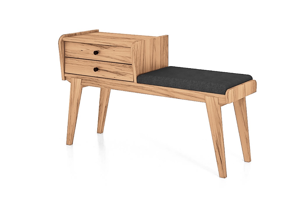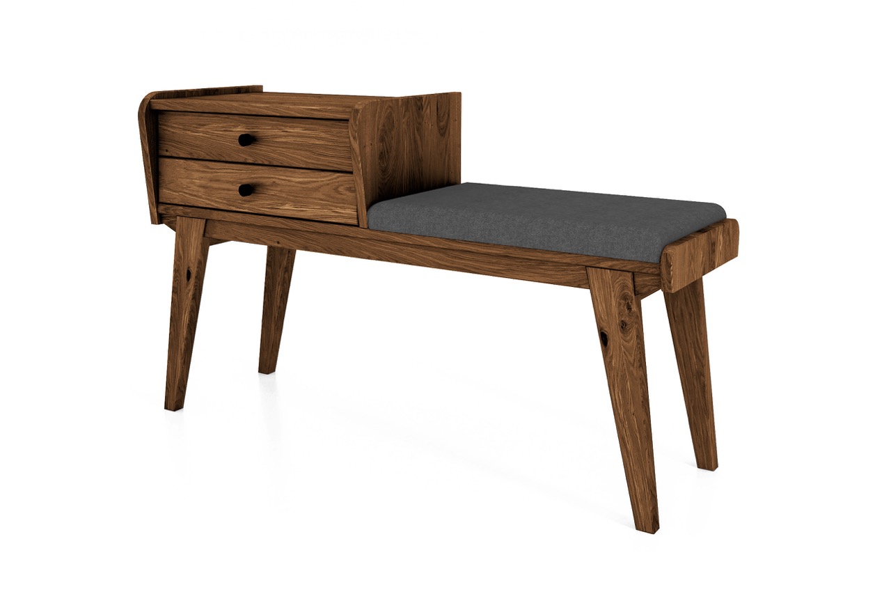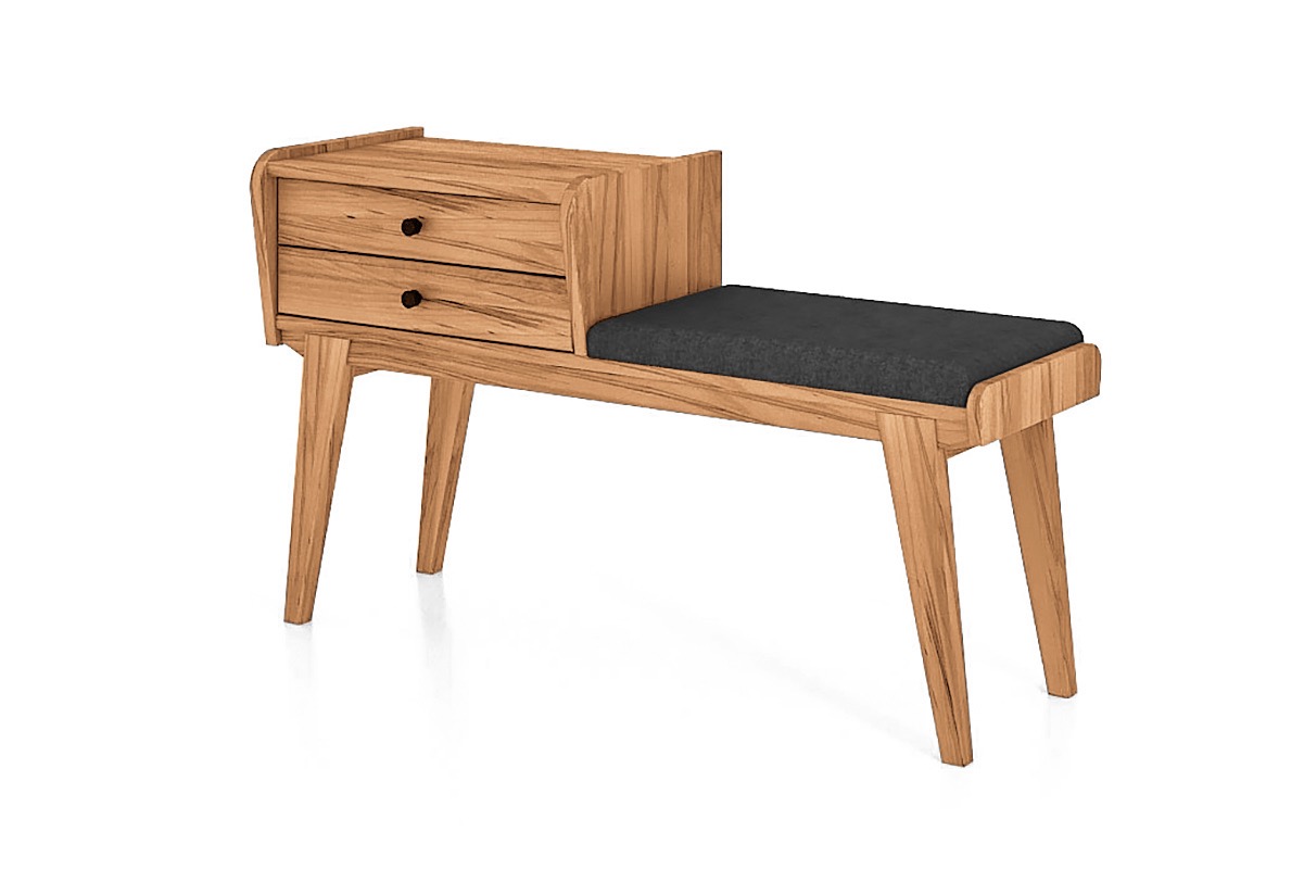 Entrébenk RETRO – Benk med skuffer og polstret sete, i massivt tre