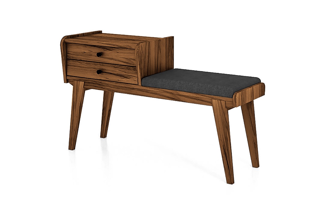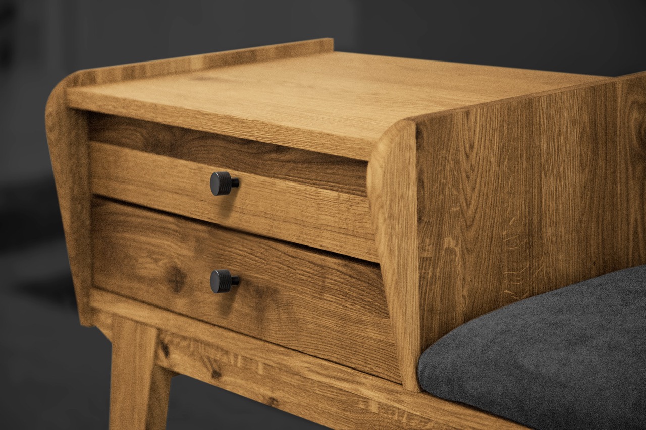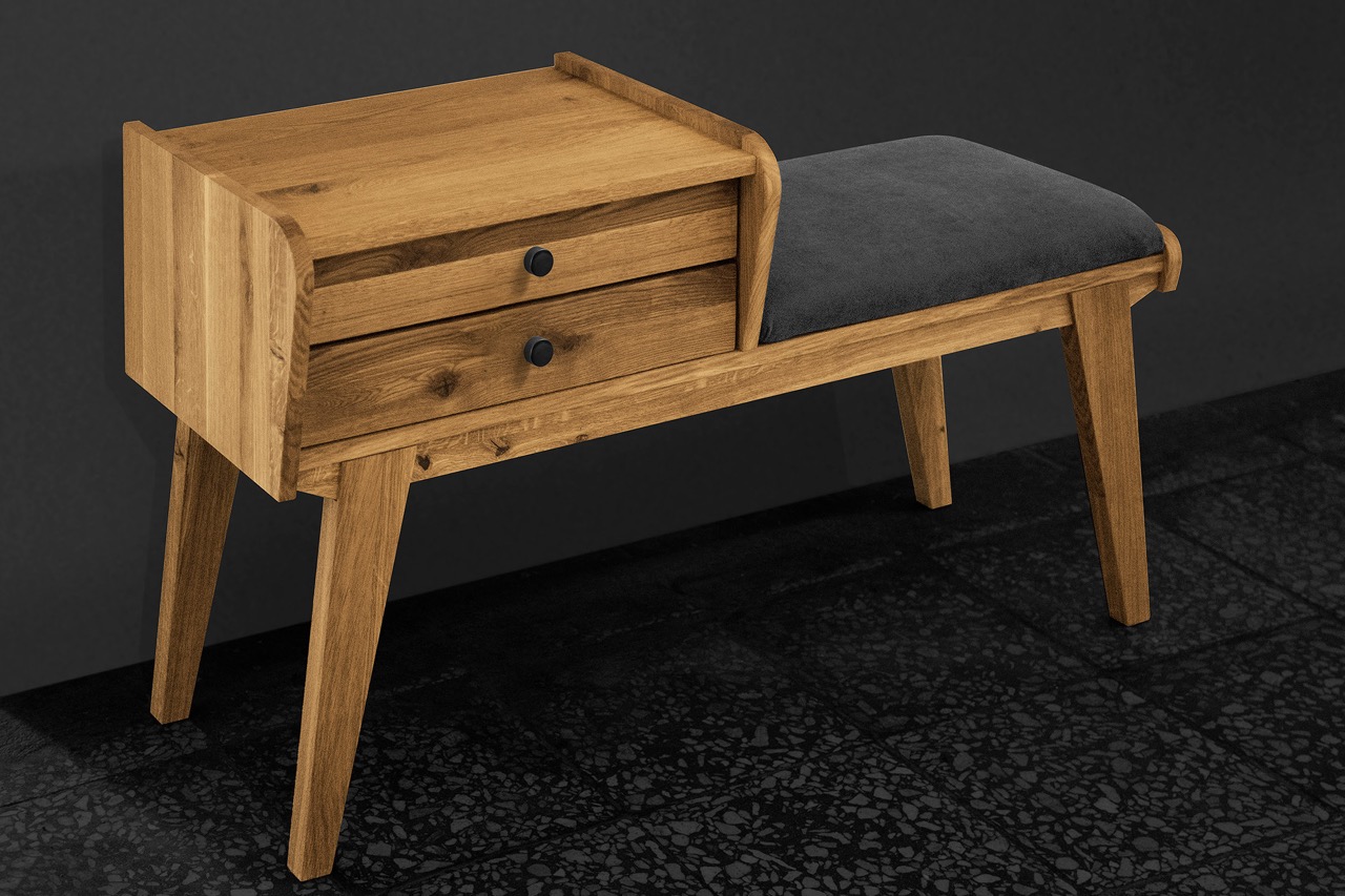 Entrébenk RETRO kombinerer funksjon og estetikk i en elegant løsning til entréen eller soverommet. Med to romslige skuffer og komfortabelt, polstret sete gir benken både oppbevaring og praktisk sitteområde.