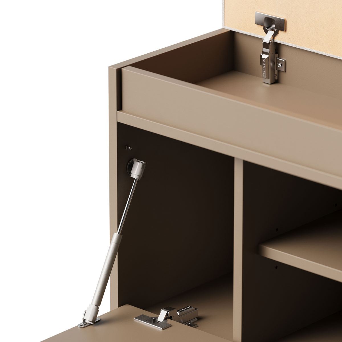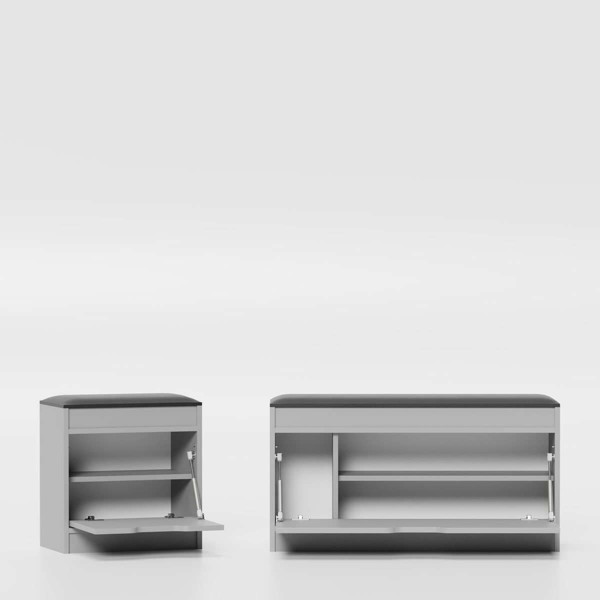 FINNES W6 er en kompakt, men svært funksjonell løsning for entreen. Settet kombinerer en praktisk skobenk med en knaggerekke, og gir både sitteplass, oppbevaring og plass til yttertøy i ett møbel. Den rene formen og de rolige flatene gjør at det passer inn i både små og store rom, samtidig som det enkelt kan kombineres med andre deler av FINNES-serien. Skobenken gir skjult oppbevaring til sko, mens toppen fungerer som et behagelig sete eller en flate til vesker og småting. Knaggrekken kan tilpasses i antall og farge, og gir orden og oversikt til jakker, skjerf og vesker. Hele konstruksjonen kan velges i flere farger og størrelser, slik at møbelet glir naturlig inn i hjemmets helhet.