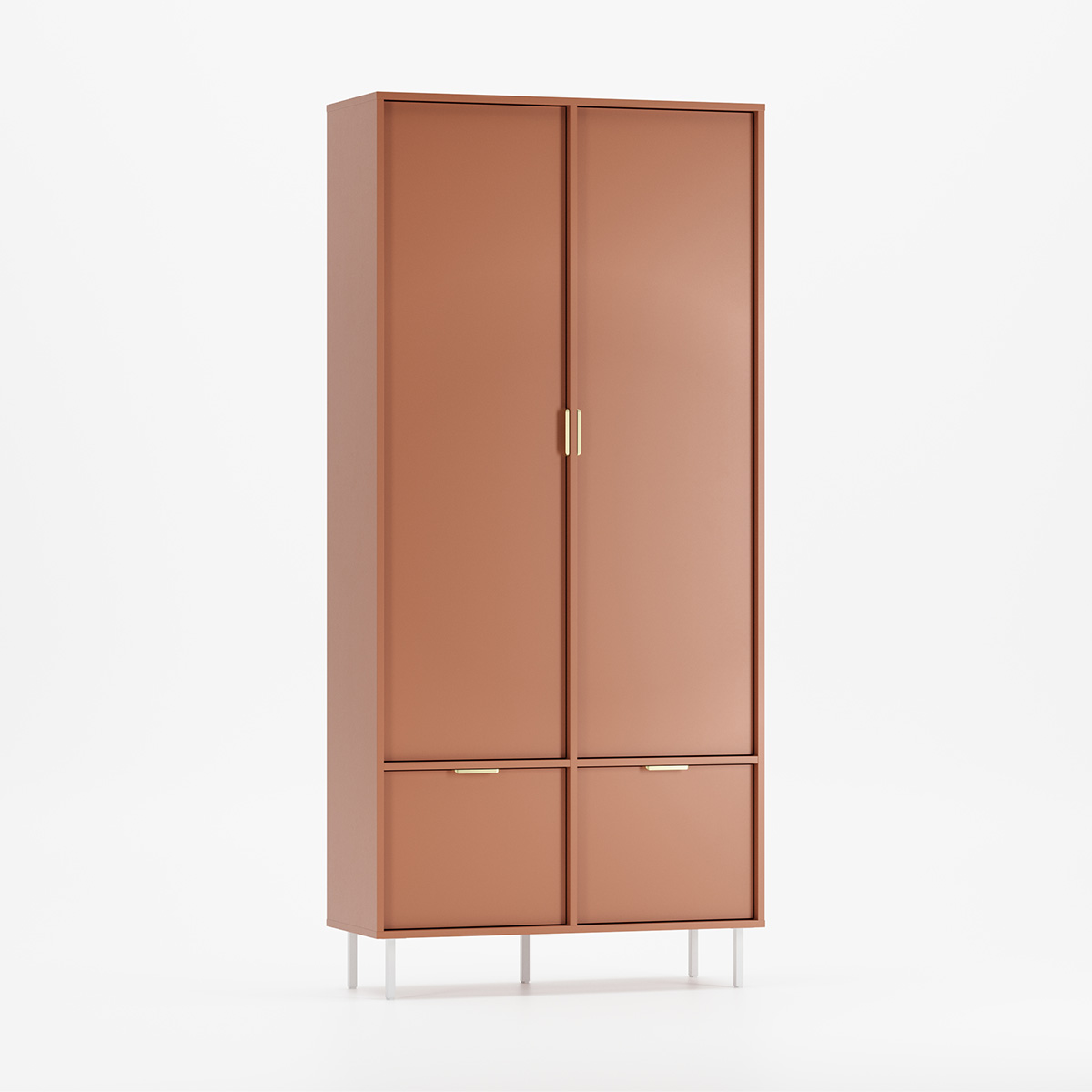 SIGI SZS7 kombinerer lett, harmonisk uttrykk med praktisk oppbevaring. To hovedseksjoner bak klassiske dører – én med garderobehenger og én med hyller – gir fleksibel organisering. Seks flyttbare hyller fordelt på øverste og nederste del tilpasser seg dine behov.