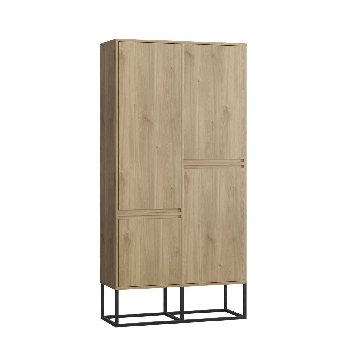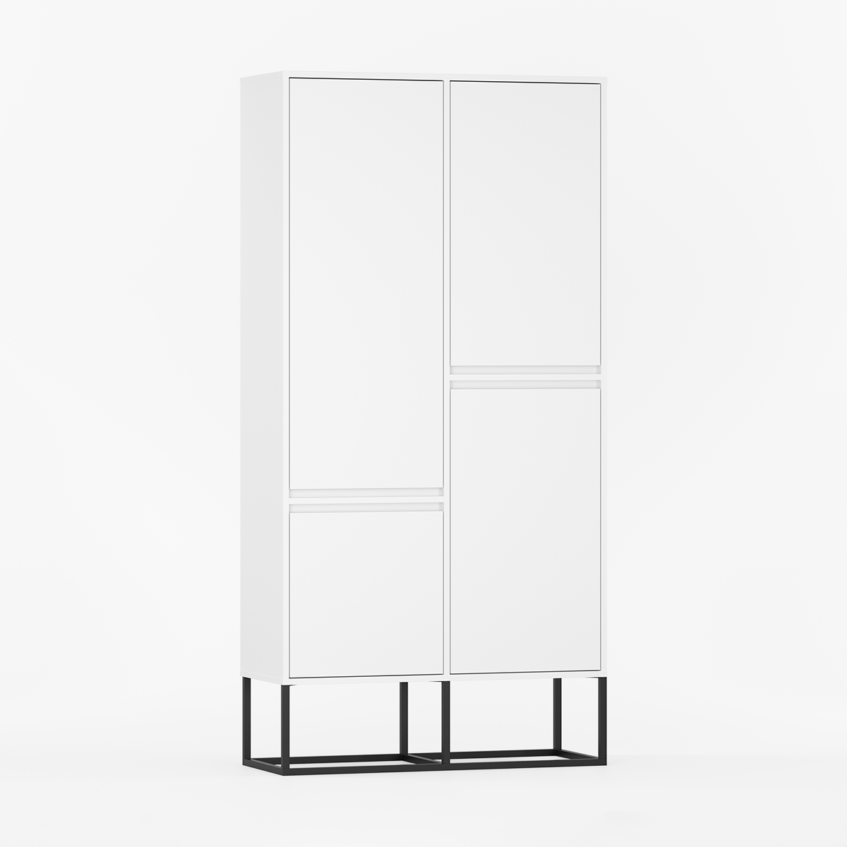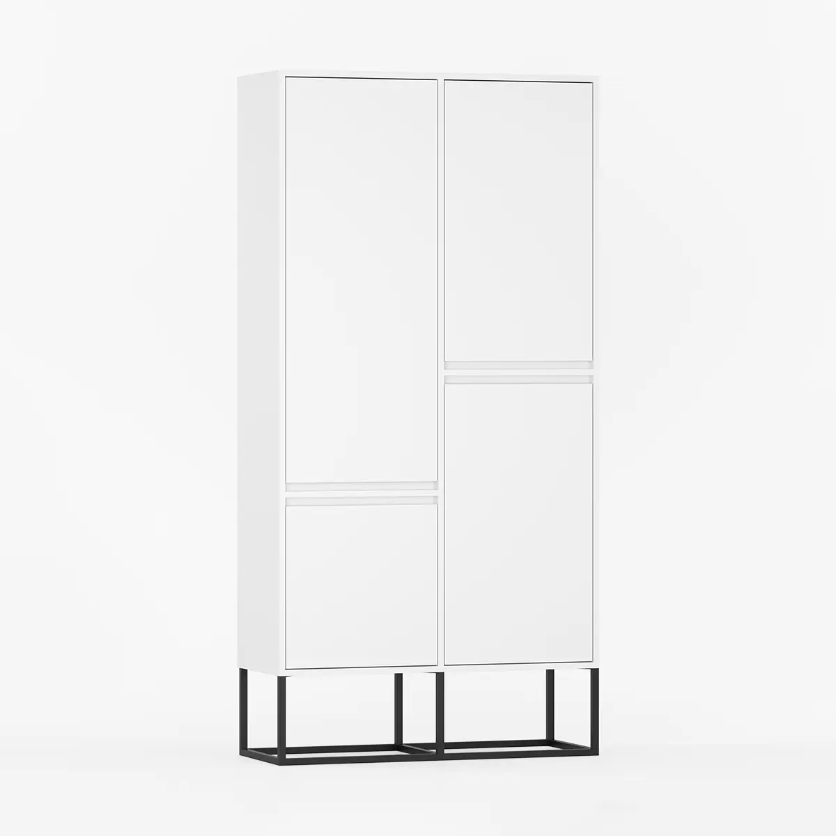 Moderne garderobeskap med fire dører og slanke metallben.