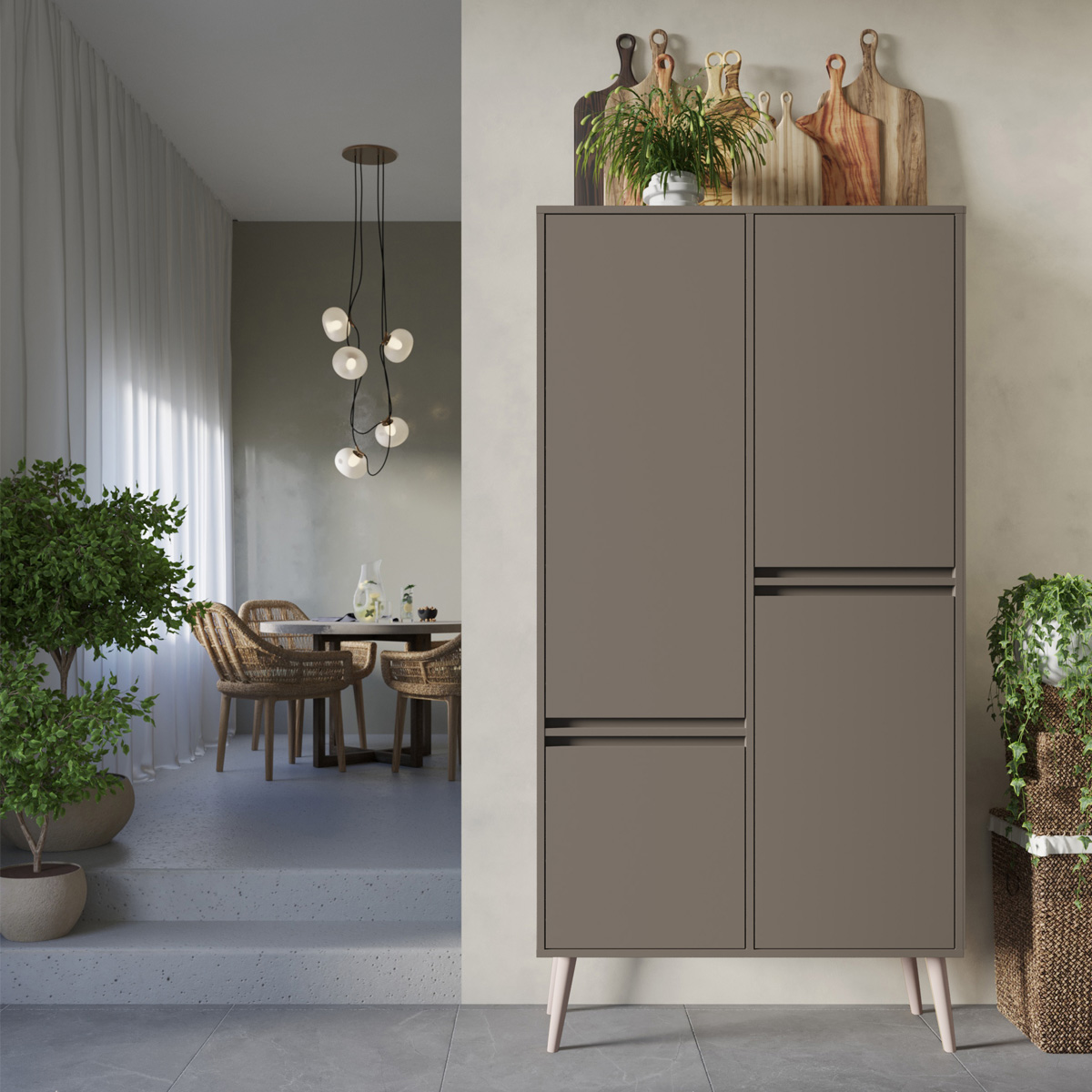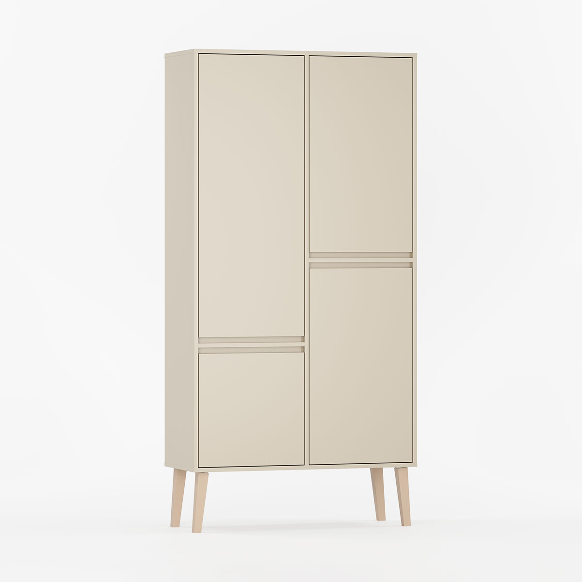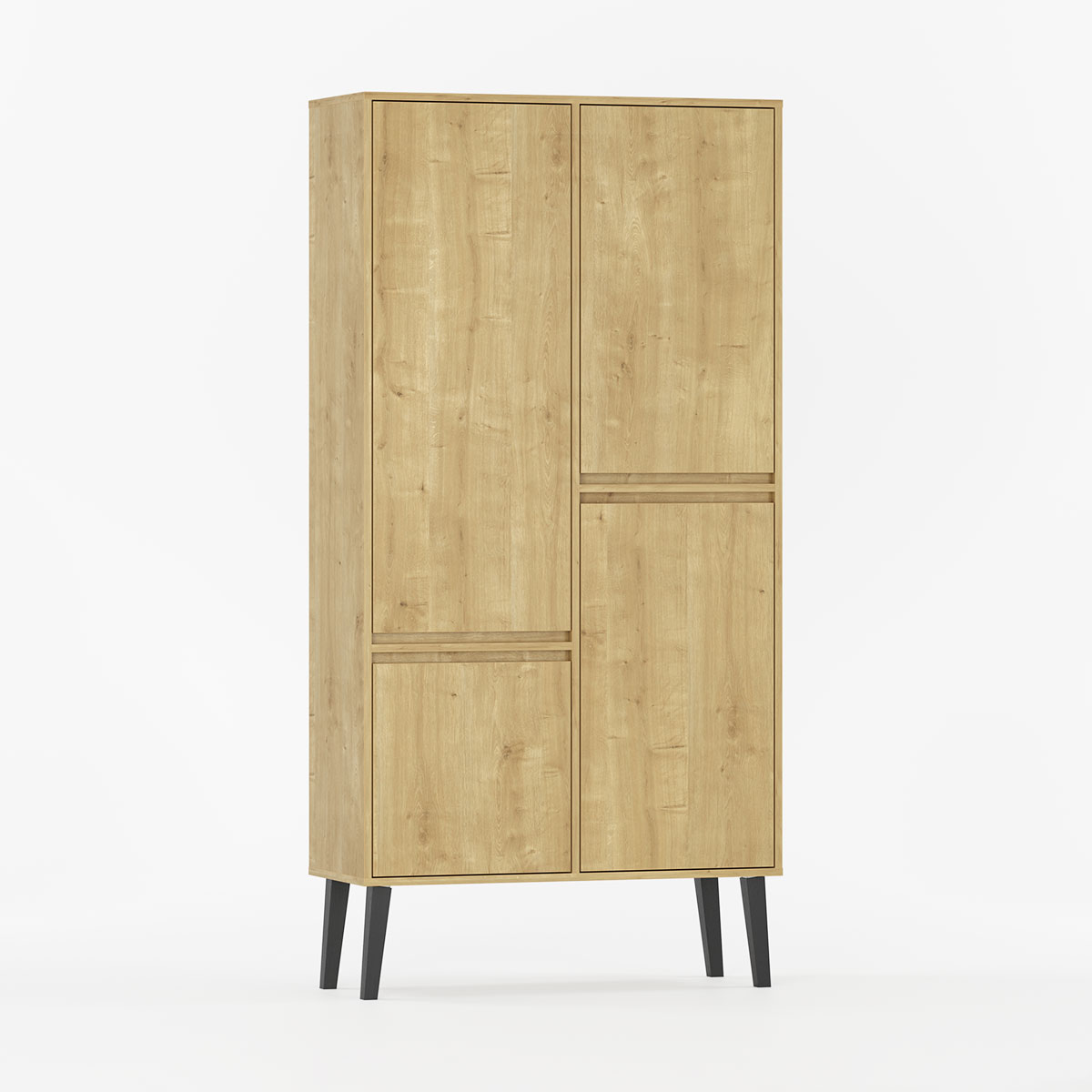Fenris SZF3 kombinerer enkelhet med karakter. De fire asymmetriske dørene uten håndtak skaper et rent uttrykk som passer inn i både skandinaviske og rustikke rom – fra entré til soverom eller ungdomsrom.
