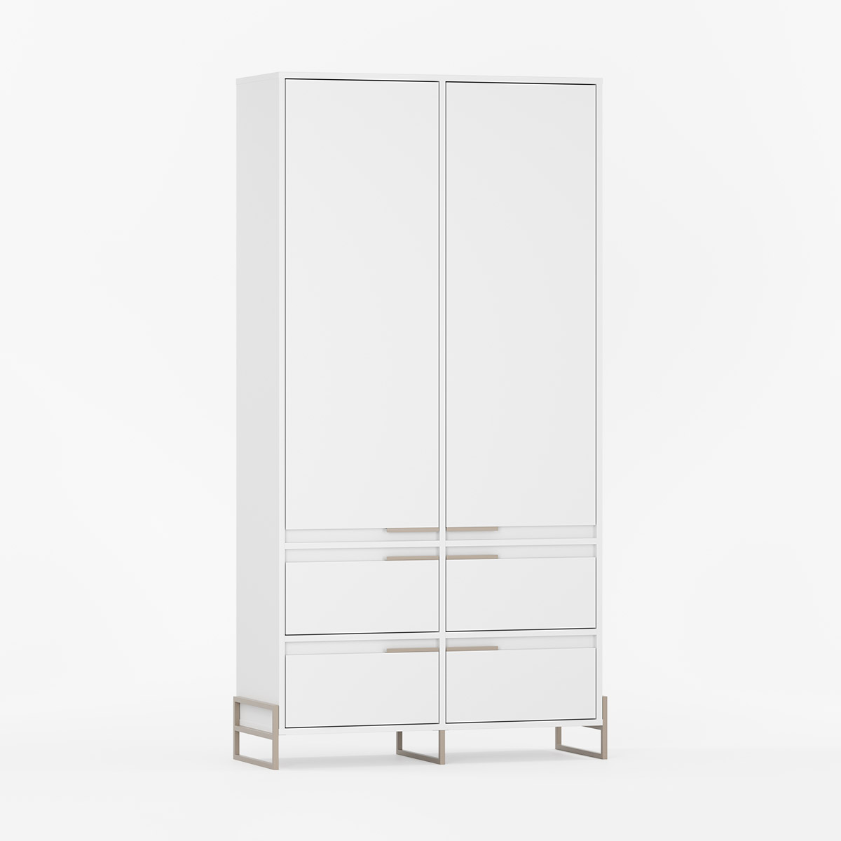 Moderne garderobeskap med to dører og fire skuffer.