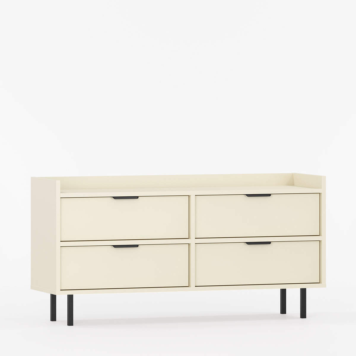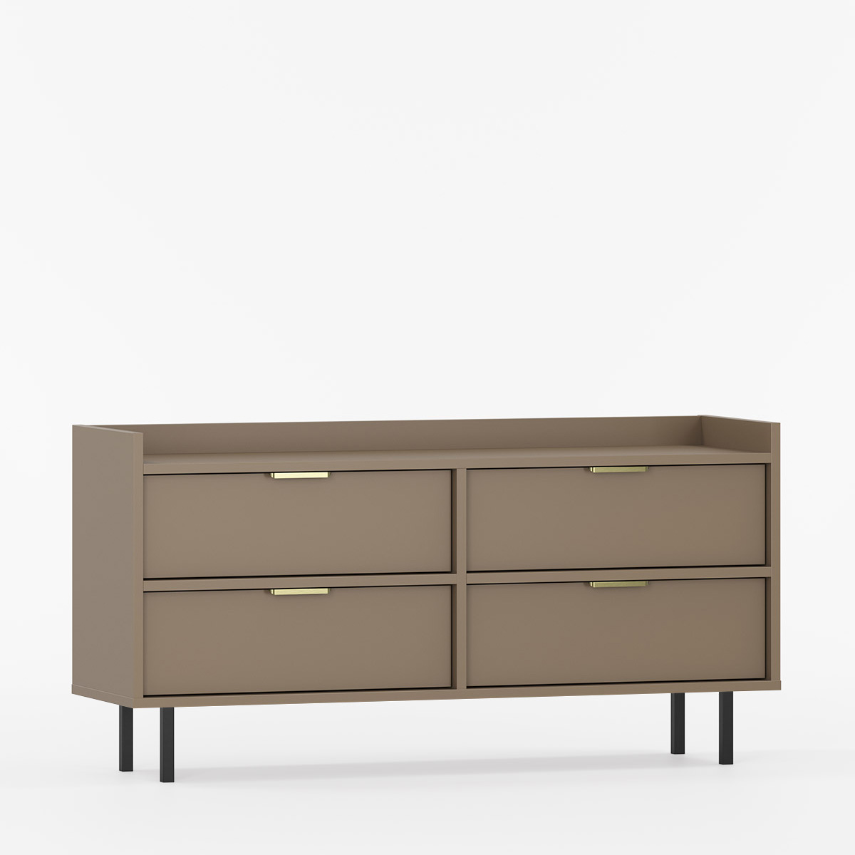 Sigi S2TV4S er et lavt, harmonisk bord med rene linjer og god plass til både medier og daglig bruk. Fire skuffer holder alt skjult, men lett tilgjengelig, mens den brede toppplaten med kant inviterer til utstilling – enten av planter, bøker eller fjernkontroller.