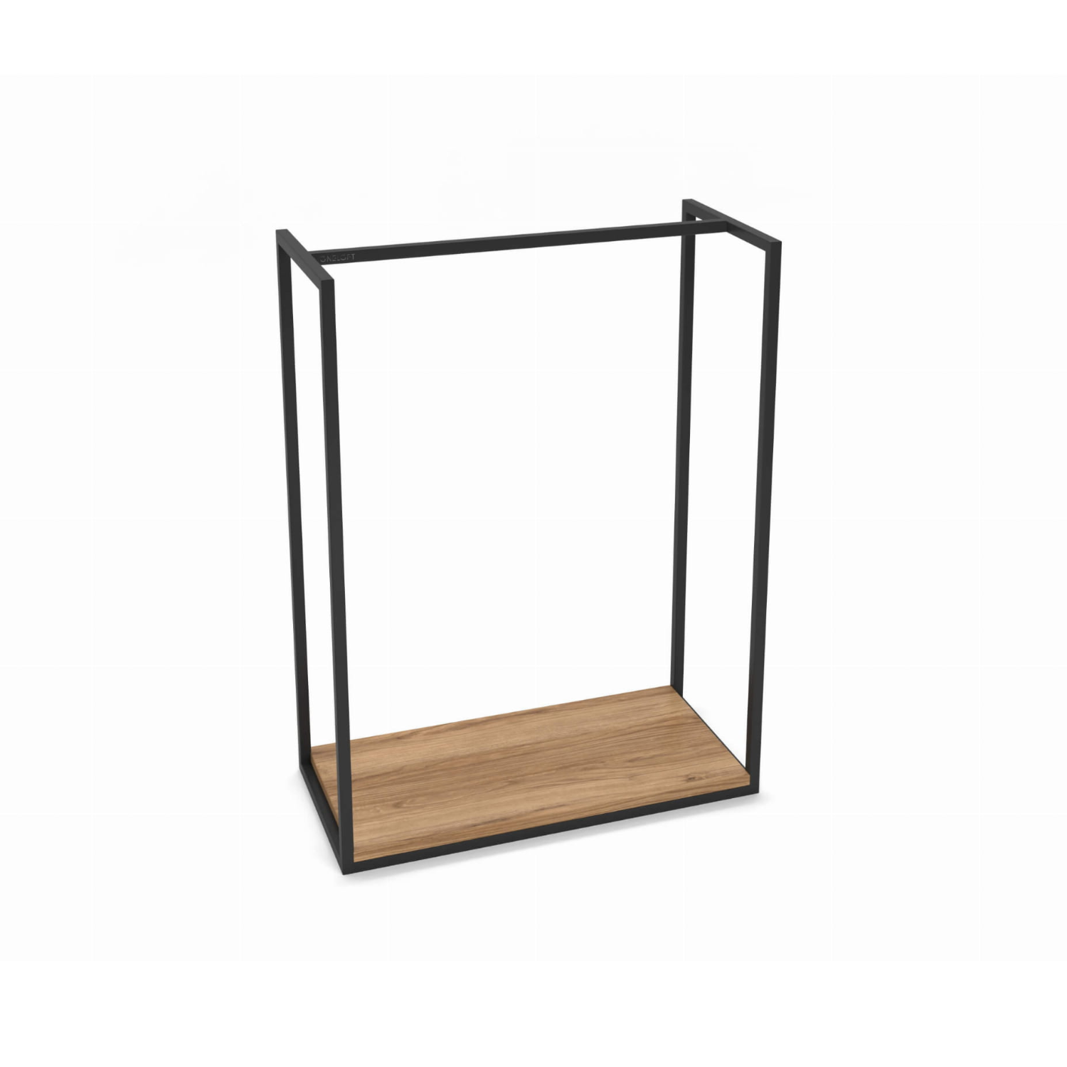 SHELBY er et rent og minimalistisk klesstativ som kombinerer henging og oppbevaring i ett elegant design. Det robuste stålstellet holder klærne dine organisert, mens hyllen gir plass til sko, vesker eller kurver.