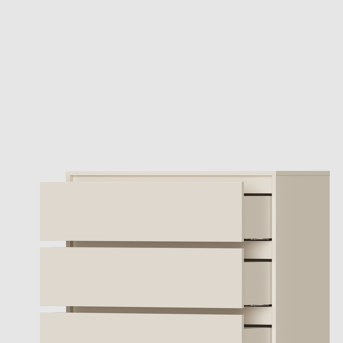 ODIS OKK1 kombinerer moderne linjer med et uttrykk som føles både lett og solid. De markerte profilene erstatter tradisjonelle ben og gjør det enkelt å plassere kommoden sammen med andre deler av ODIS-serien.