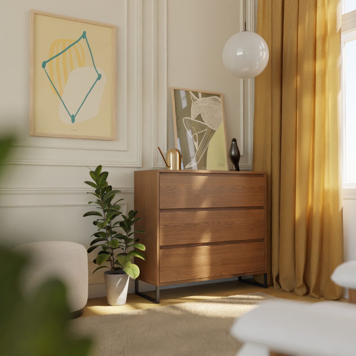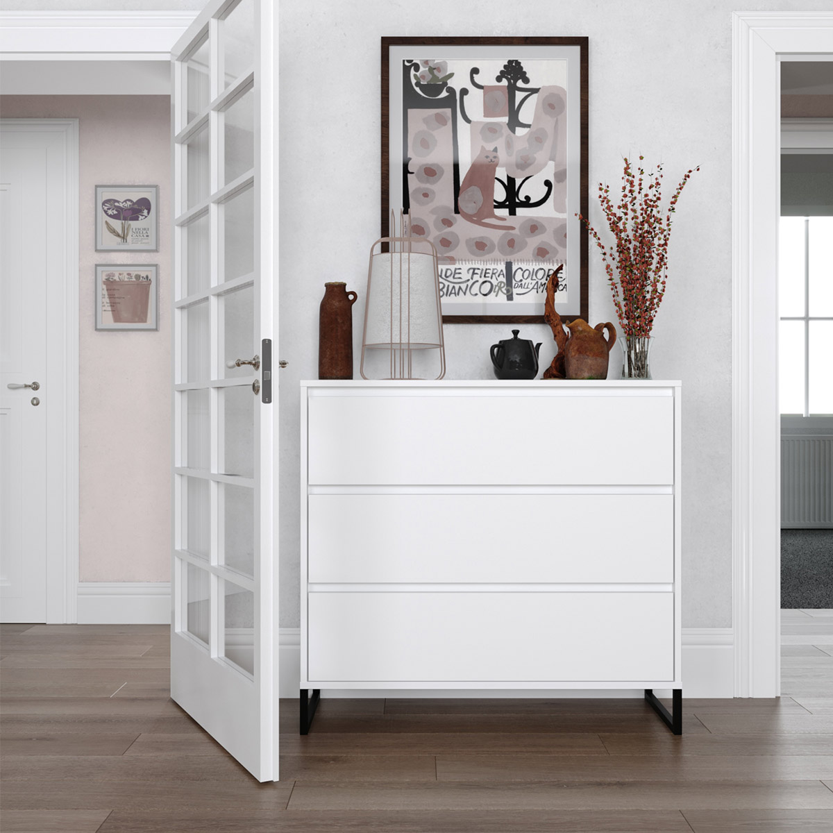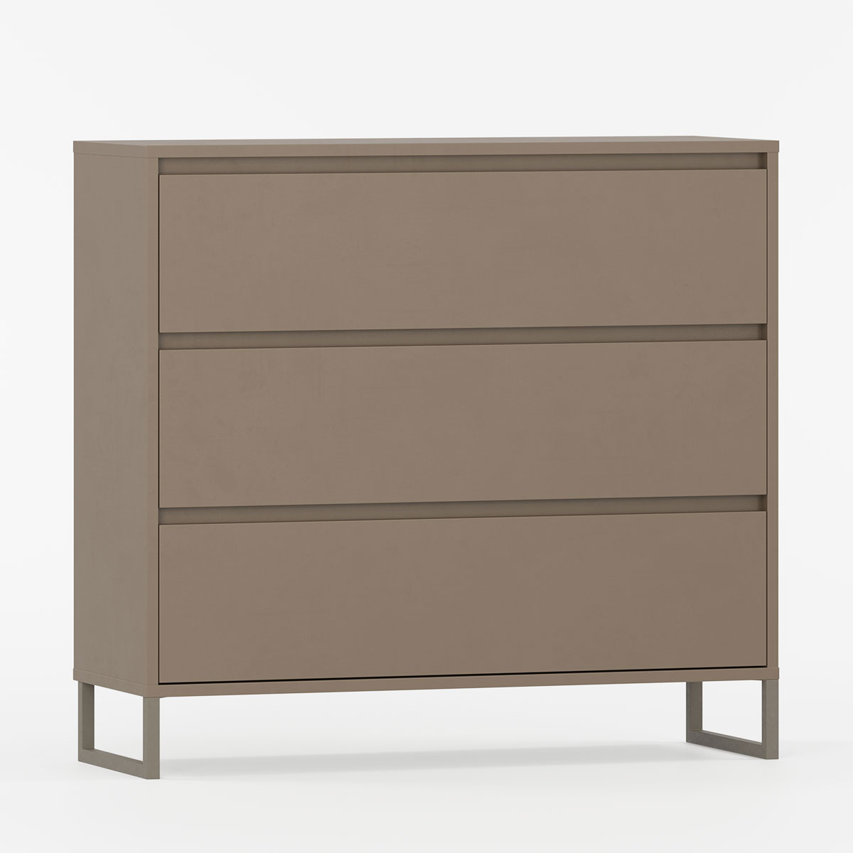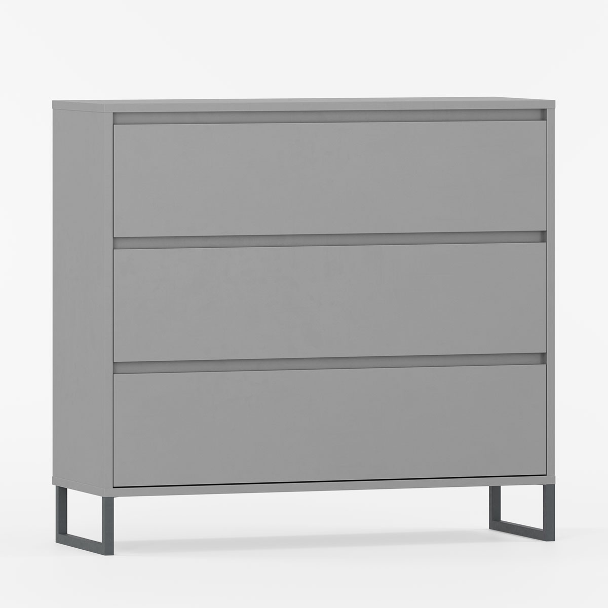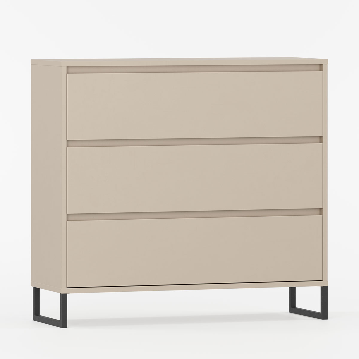 Kommode med tre romslige skuffer og slanke metalben.