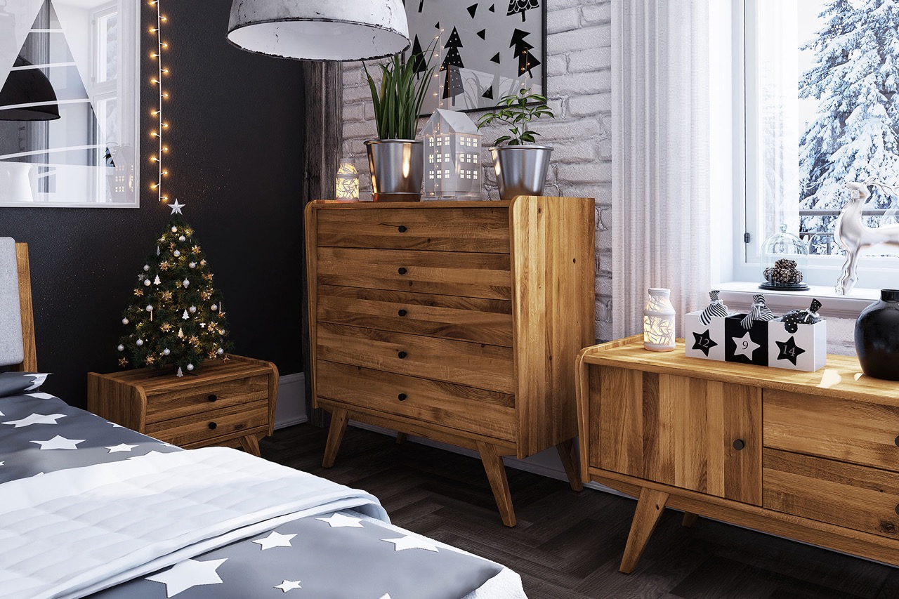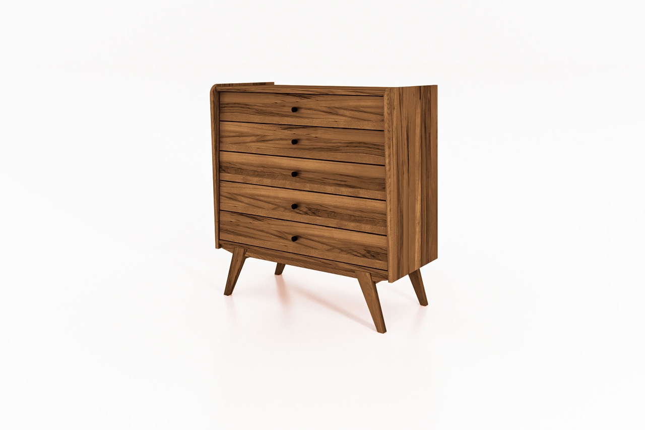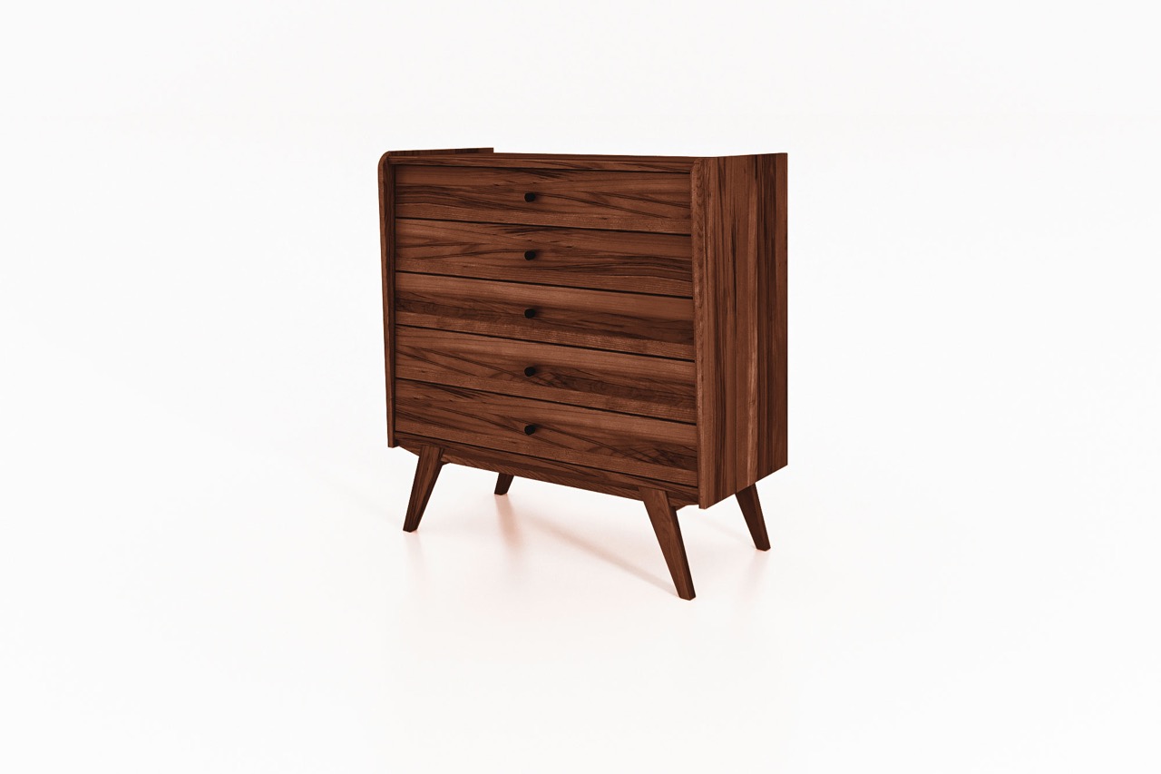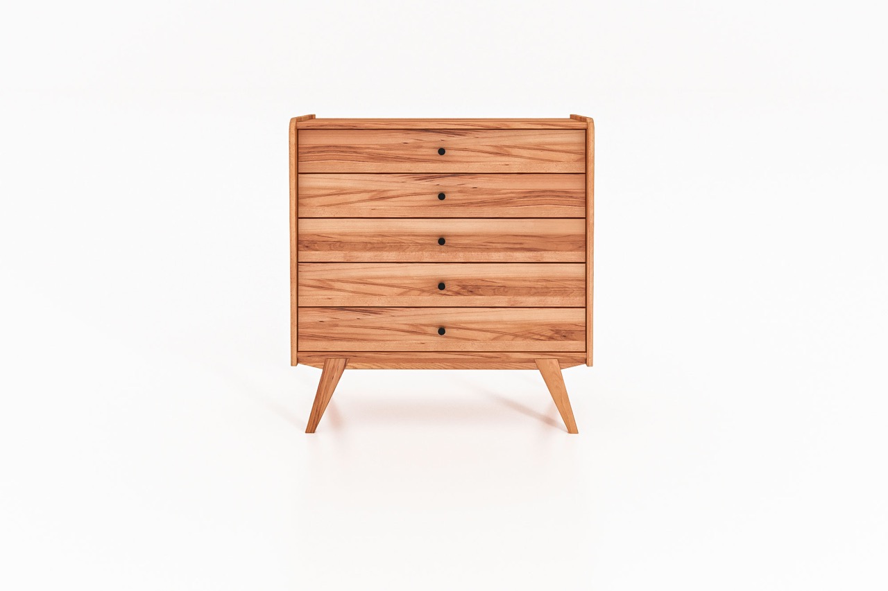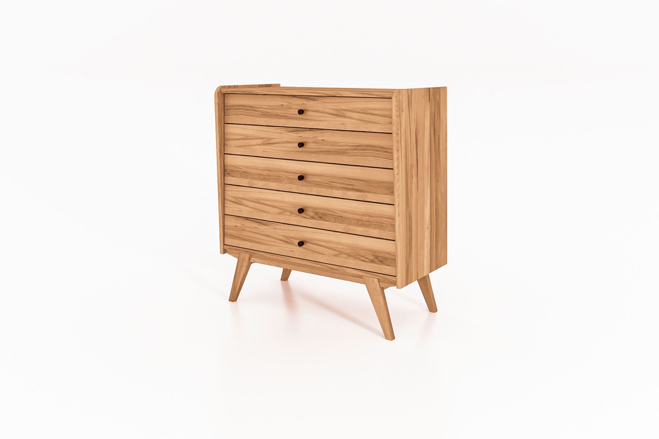 Denne romslige kommoden fra RETRO-serien er designet for deg som ønsker funksjonell oppbevaring med et estetisk løft. De fem brede skuffene gir god plass til alt fra klær og tekstiler til hverdagens småting – pakket inn i et tidløst formspråk.