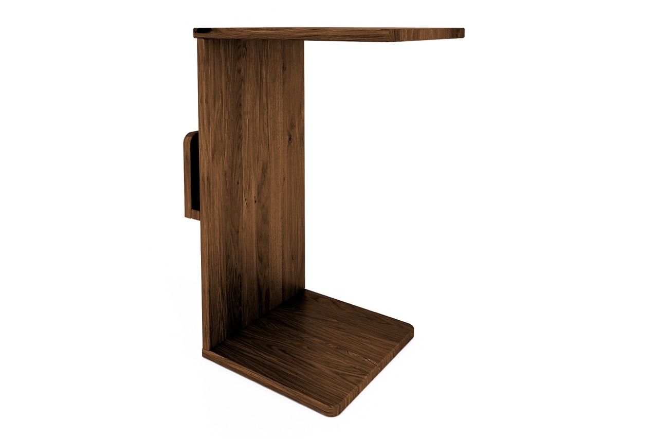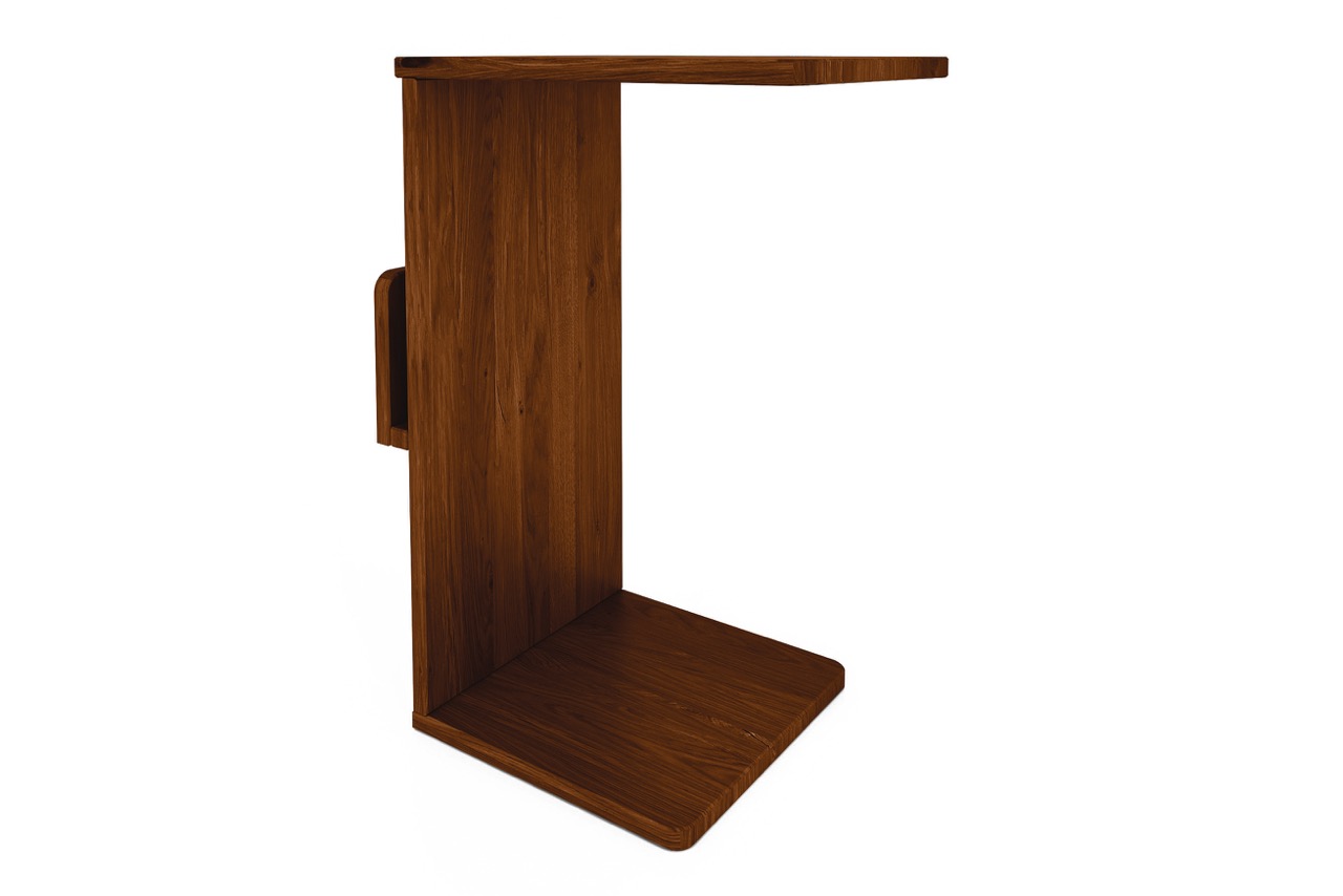 Denne varianten av RETRO nattbordet forener funksjon og fleksibilitet i et enkelt og elegant formspråk. Med sin åpne C-form og praktiske hylle skaper bordet mulighet for oppbevaring og bruk fra flere vinkler – perfekt som nattbord, sidebord eller en fleksibel hjelper ved sofaen.