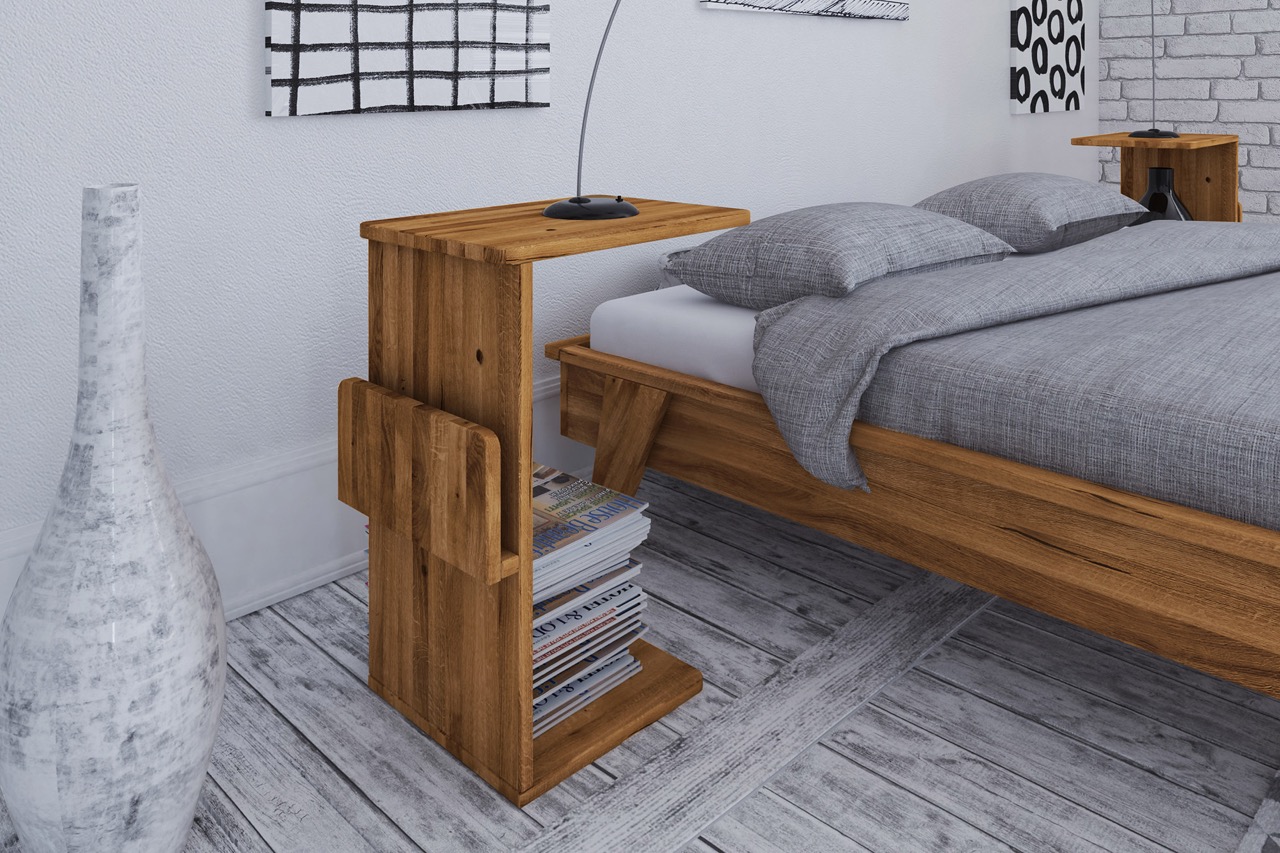 Møbler fra The Beds er laget i massivt tre – et materiale som bærer med seg naturens historie. Hver planke er unik, med sin egen struktur, farge og åreretning, og utvikler seg videre med tid, lys og klima. For å bevare skjønnheten anbefales jevnlig pleie med naturlig olje eller lakk, avhengig av behandling.