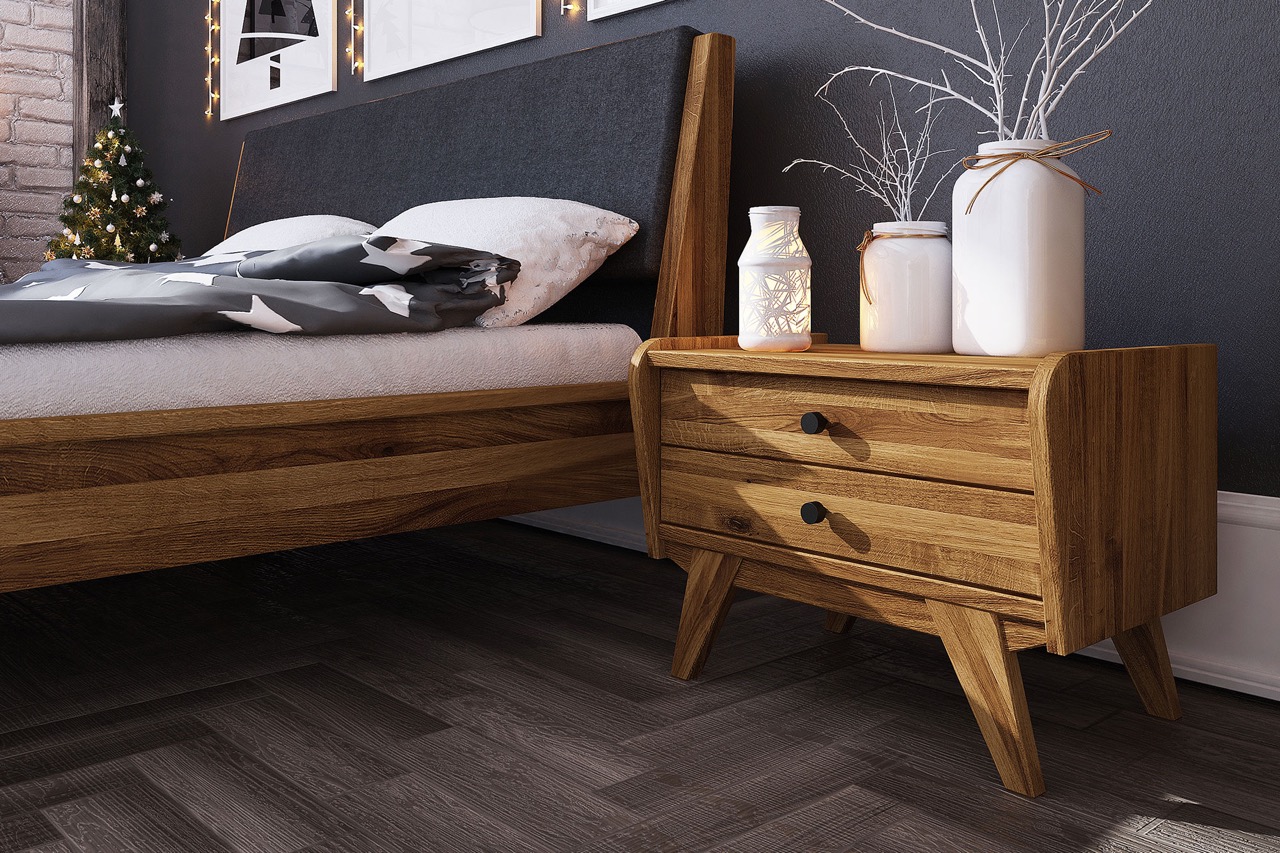 Det kompakte designet gjør det perfekt ved siden av sengen – uten å fylle for mye, men med massevis av karakter. Utført i massivt, oljet tre og med fine detaljer som enkle tregrep og velbalanserte proporsjoner bidrar nattbordet til et rolig og harmonisk sovemiljø.