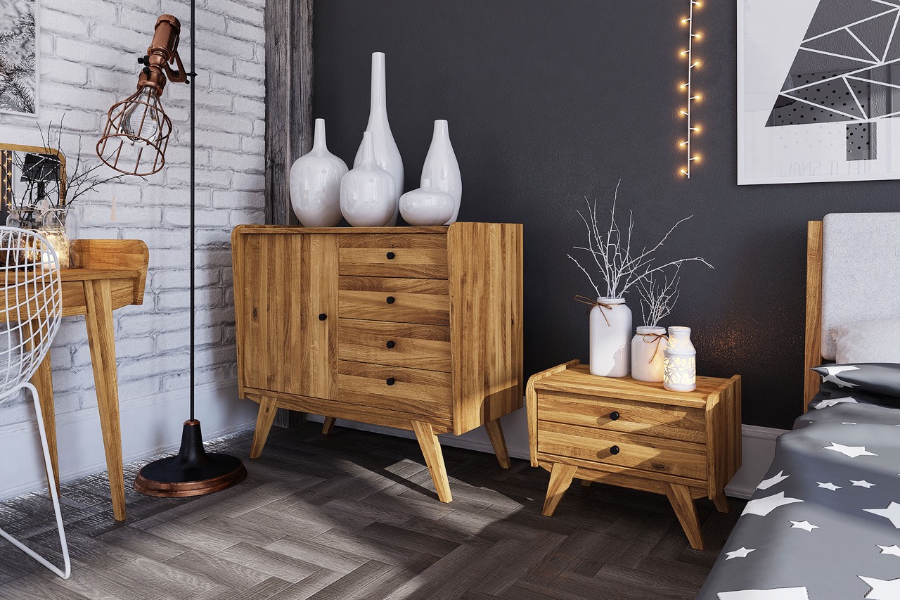 Nattbord RETRO – Med to skuffer og skråstilte ben