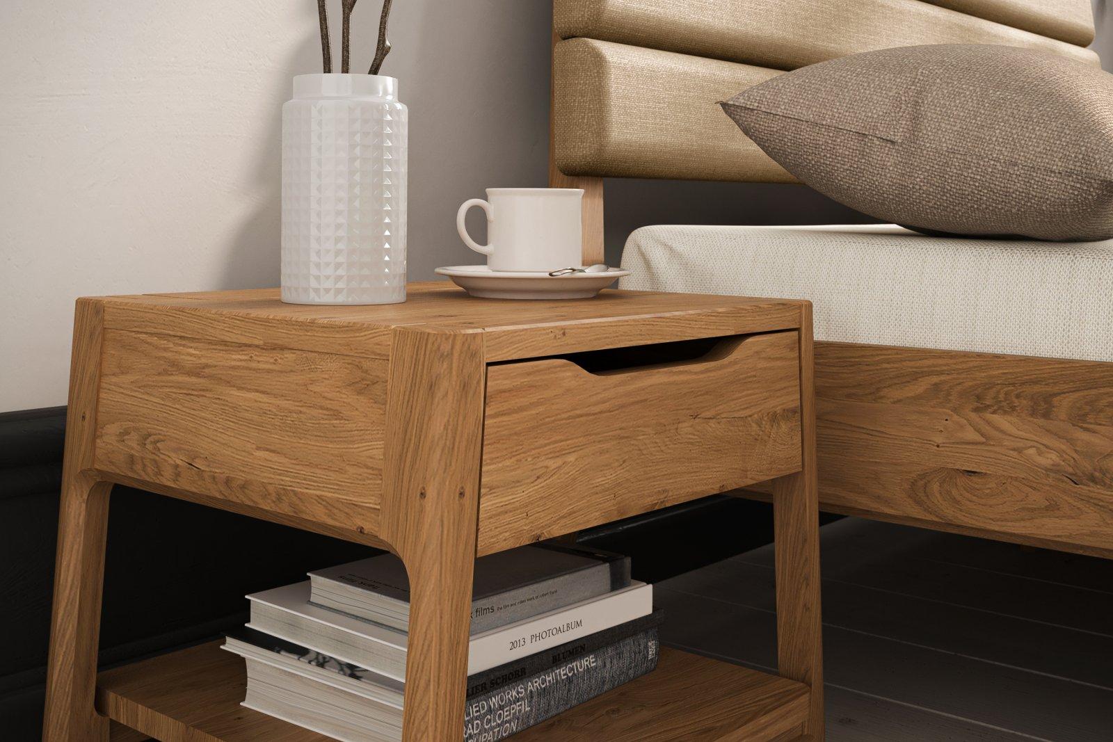 Nattbord i massivt tre, med skuff.
