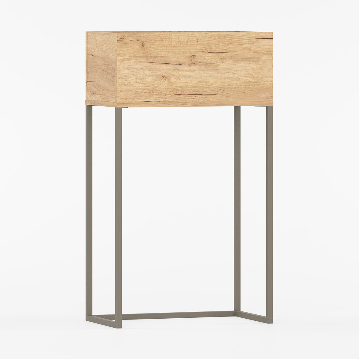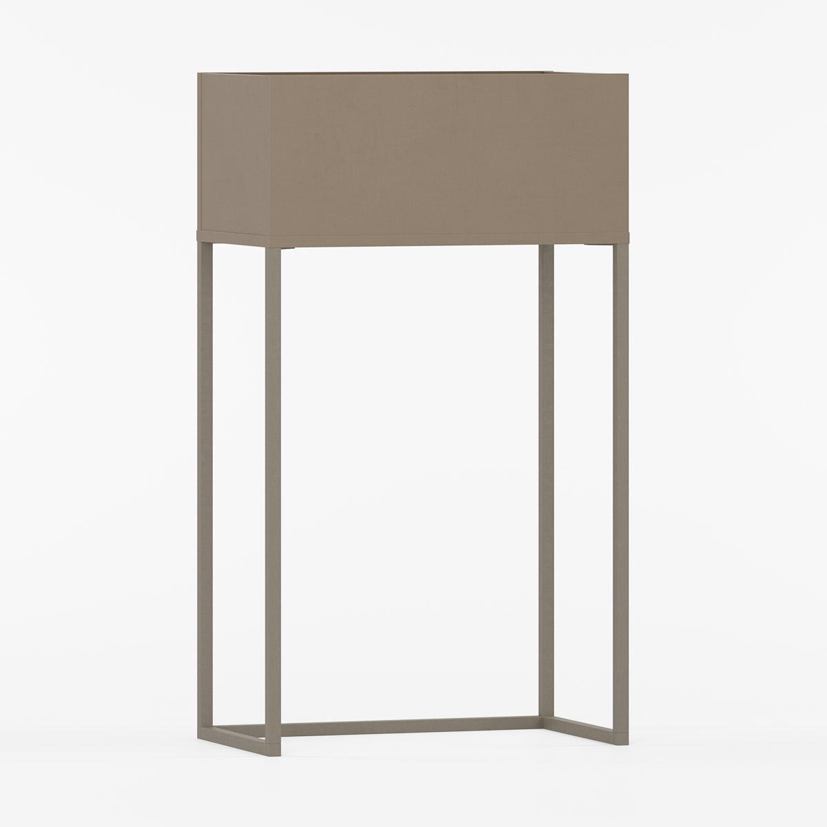 Med sin romslige form er den ideell både for høye planter og hengende sorter, og de robuste stålbenene gir kassen et lett uttrykk samtidig som de beskytter mot fukt og gjør rengjøring enklere.