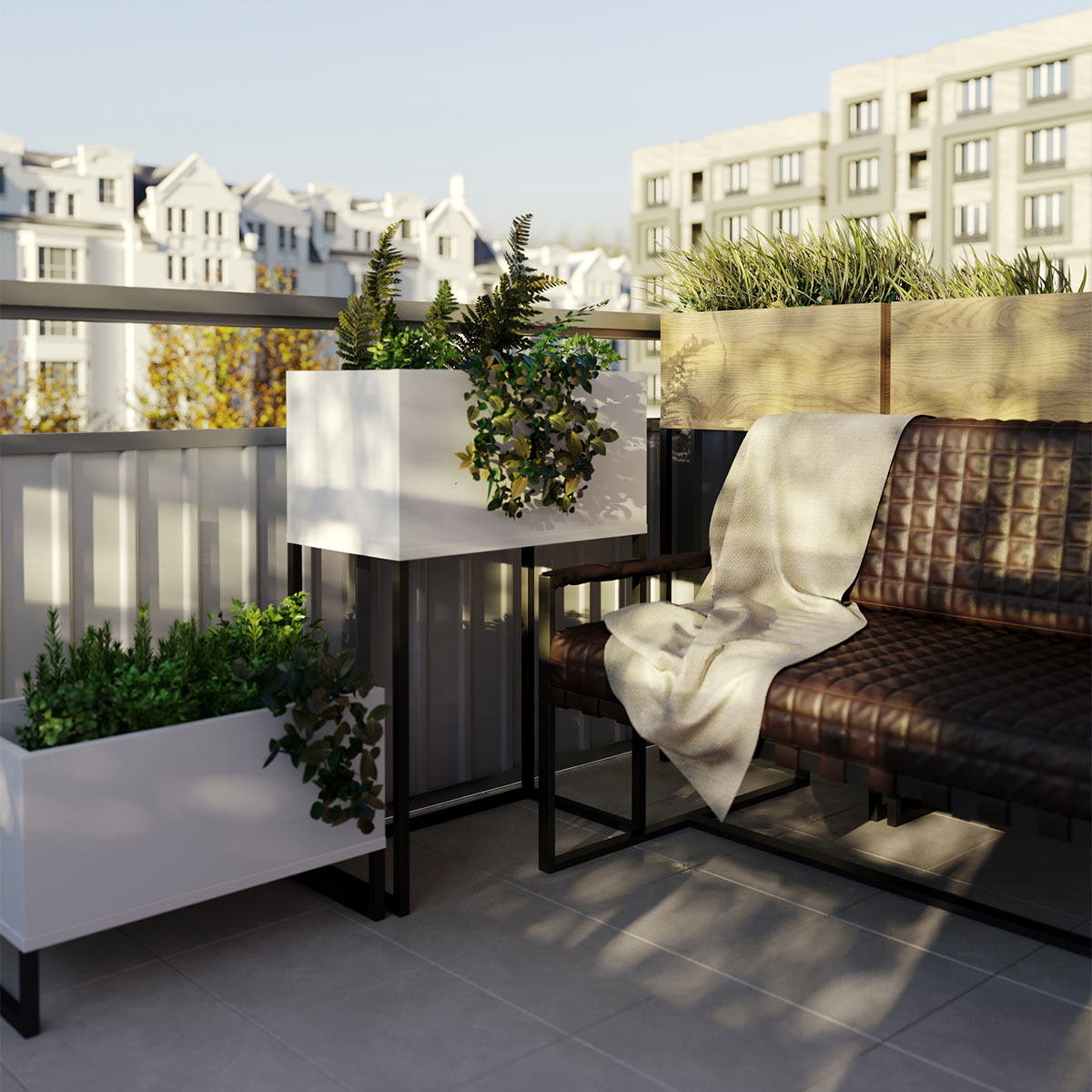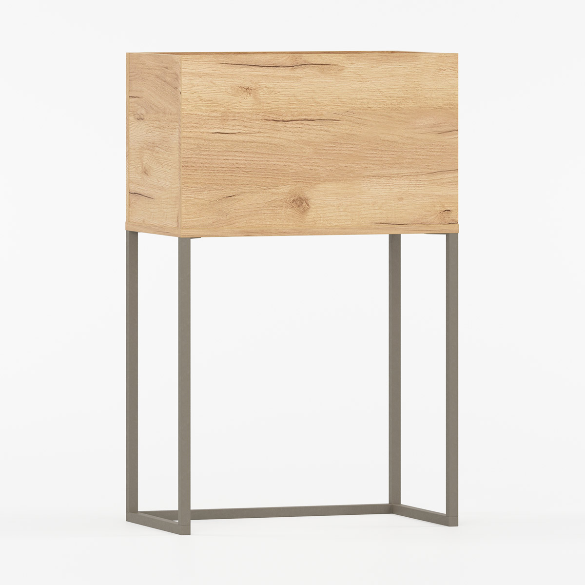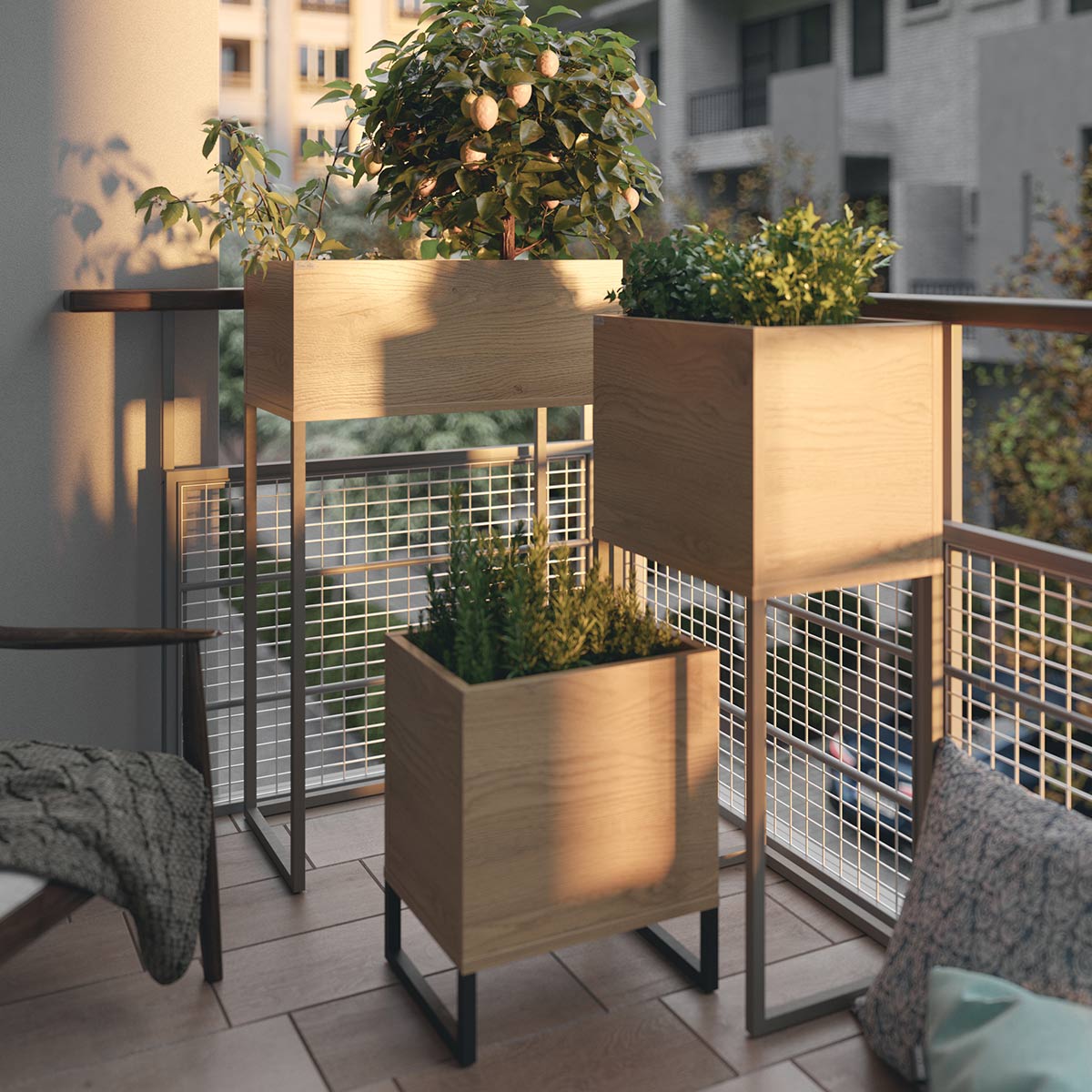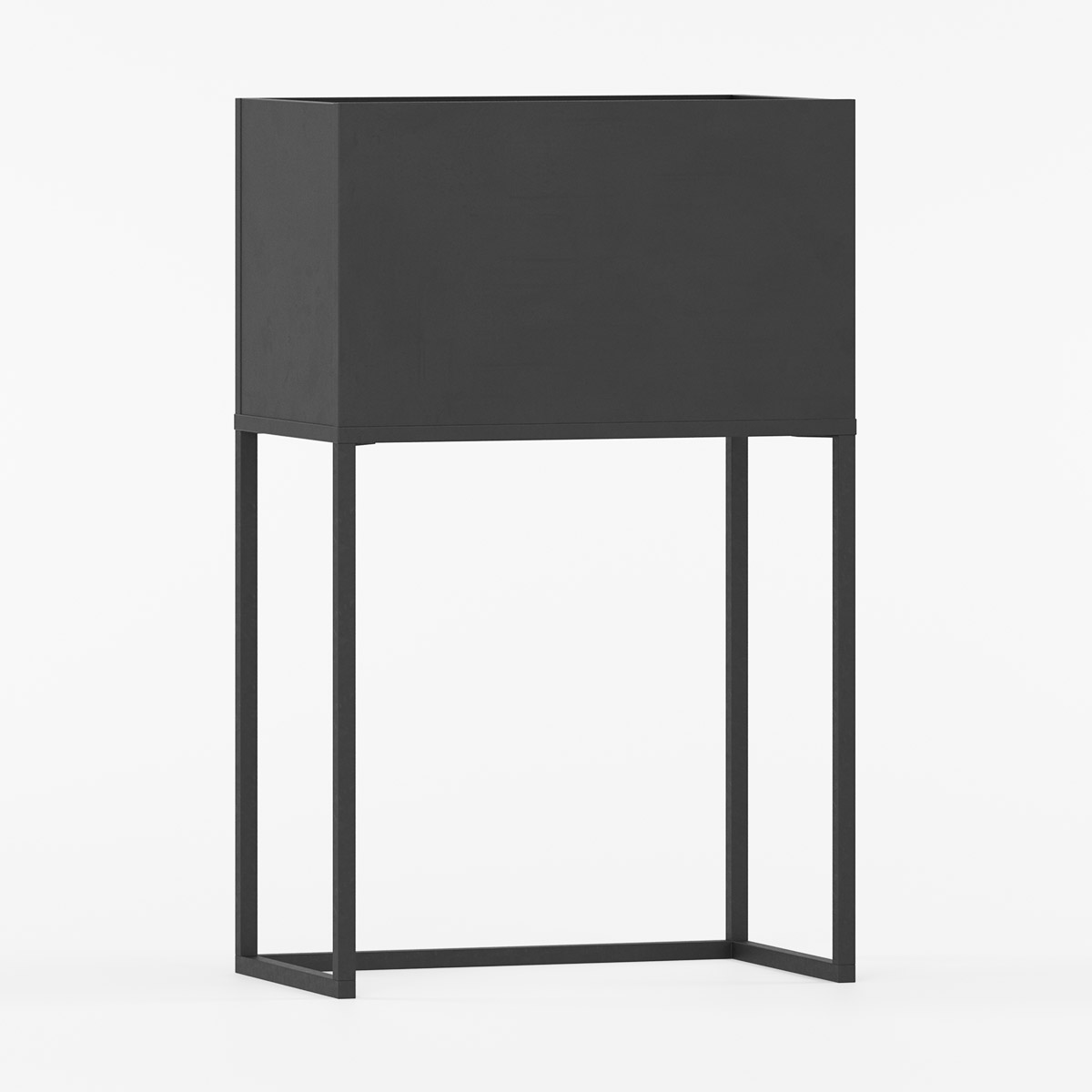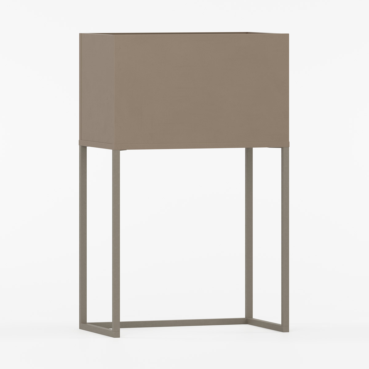 Denne modellen fra ODIS-kolleksjonen er et mellomhøyt møbel som passer naturlig inn i ulike rom. Den kan brukes til å skjule potter eller stå alene som et dekorativt innslag, og gir en harmonisk ramme rundt både høye og lave planter. De solide stålbenene løfter kassen fra gulvet og beskytter mot fukt, samtidig som de gjør rengjøring enklere.
