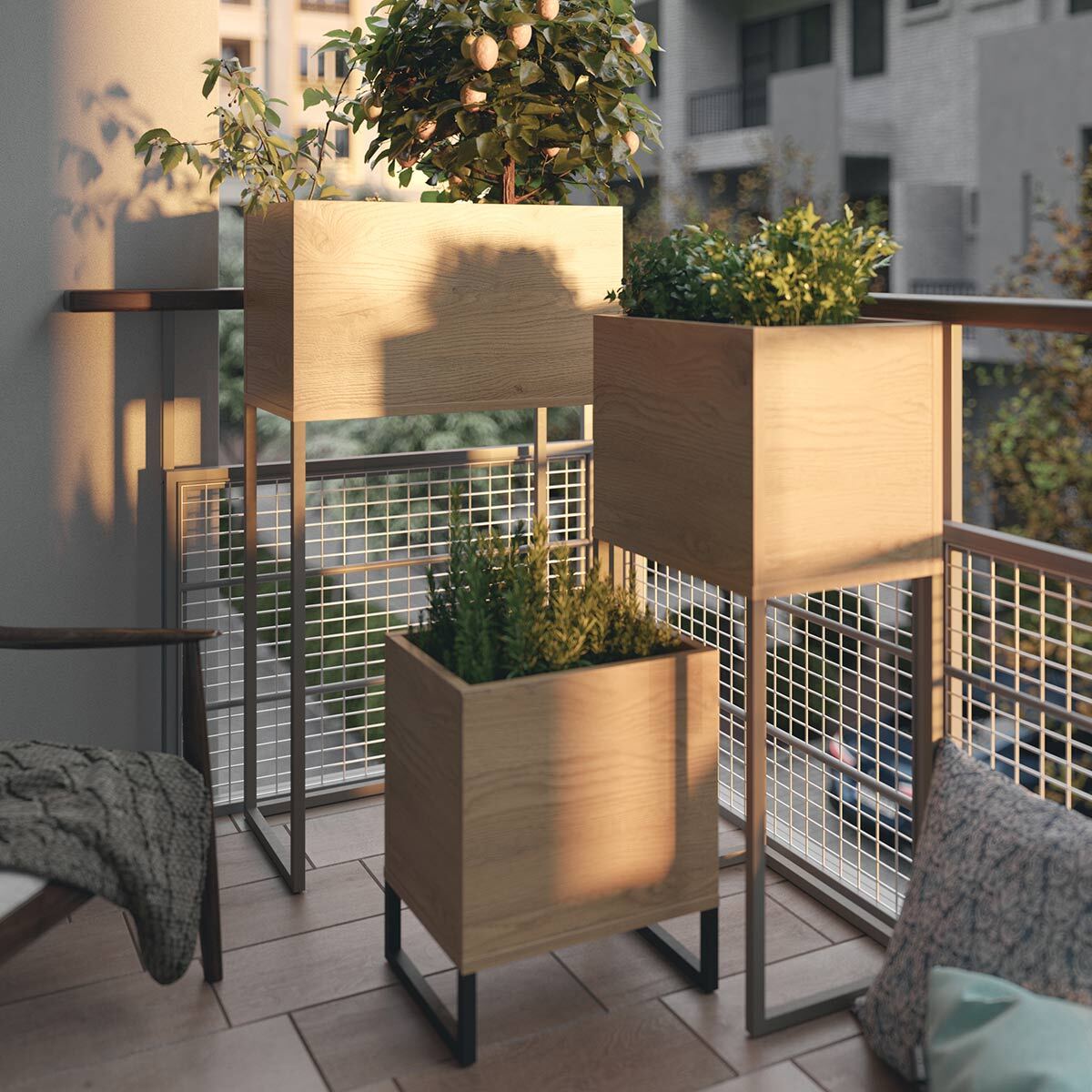 Plantekasse med slank metallramme.
