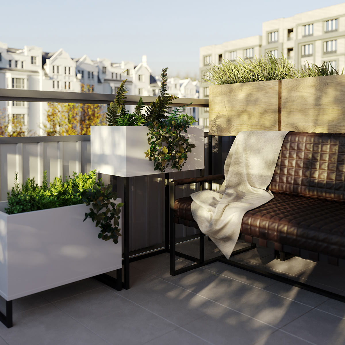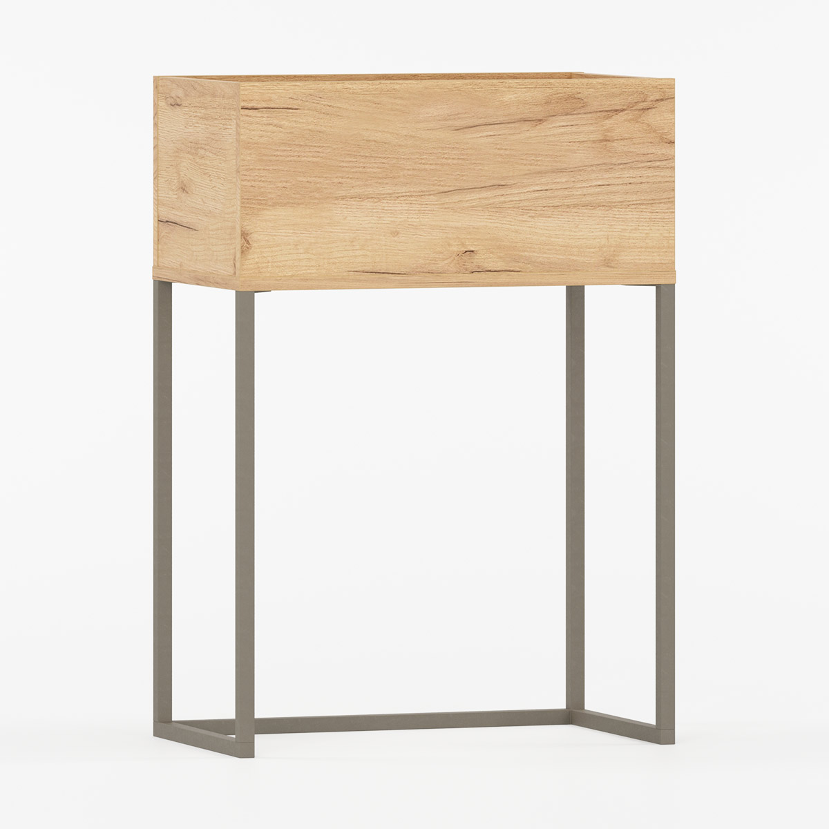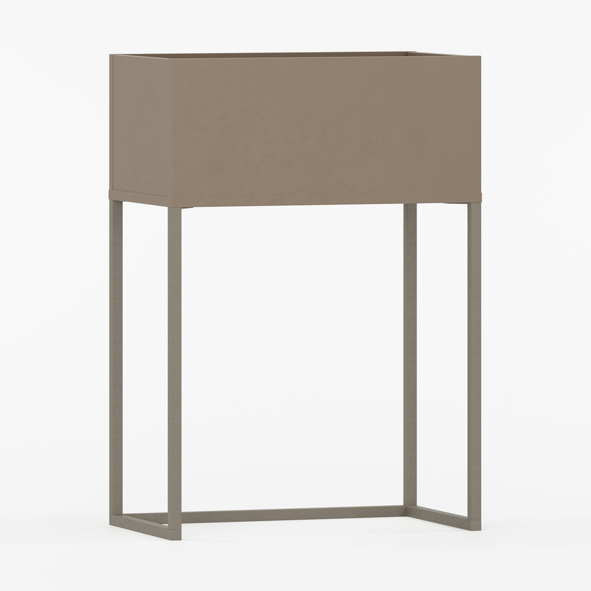 Denne modellen fra ODIS-kolleksjonen er et unikt og funksjonelt element designet for innendørs bruk. Den er ideell for å skjule potter eller fremstå som et selvstendig dekorativt møbel, og passer naturlig inn i både moderne og klassiske interiører. De solide stålbenene gir kassen et lett uttrykk, beskytter mot fukt og gjør rengjøring enklere. Den balanserte høyden gjør den fleksibel for ulike typer planter – fra grønne blader til blomstrende sorter – og den kan brukes alene eller kombineres i grupper for en sterkere visuell effekt. Modellen kan bestilles i ønsket bredde, dybde og farge på både kasse og ben.