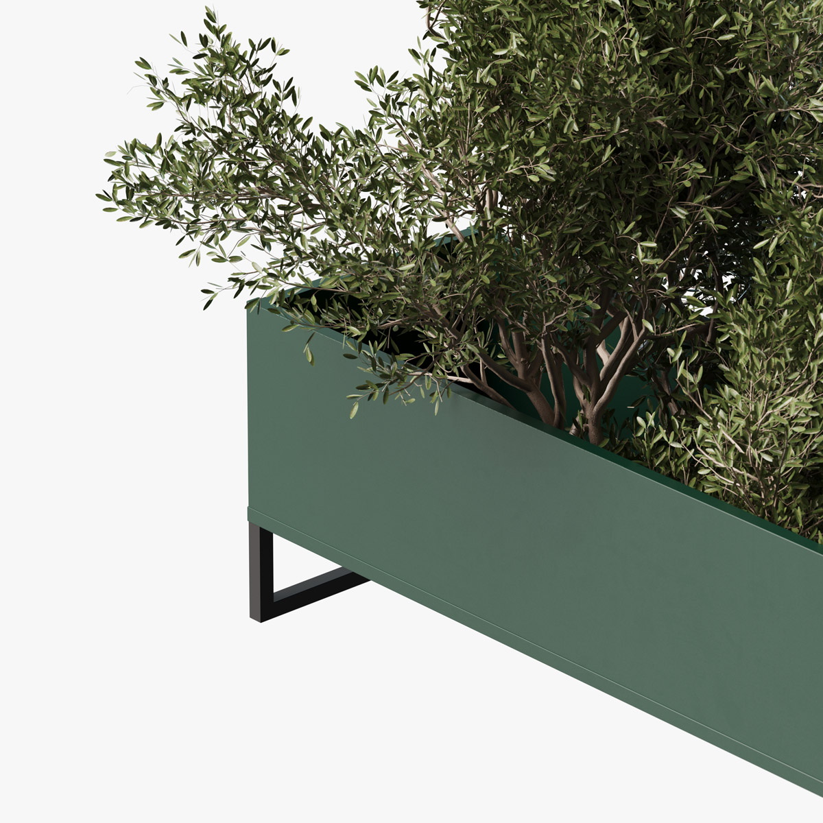 Plantekasse med metallben og tilpasningsmuligheter.