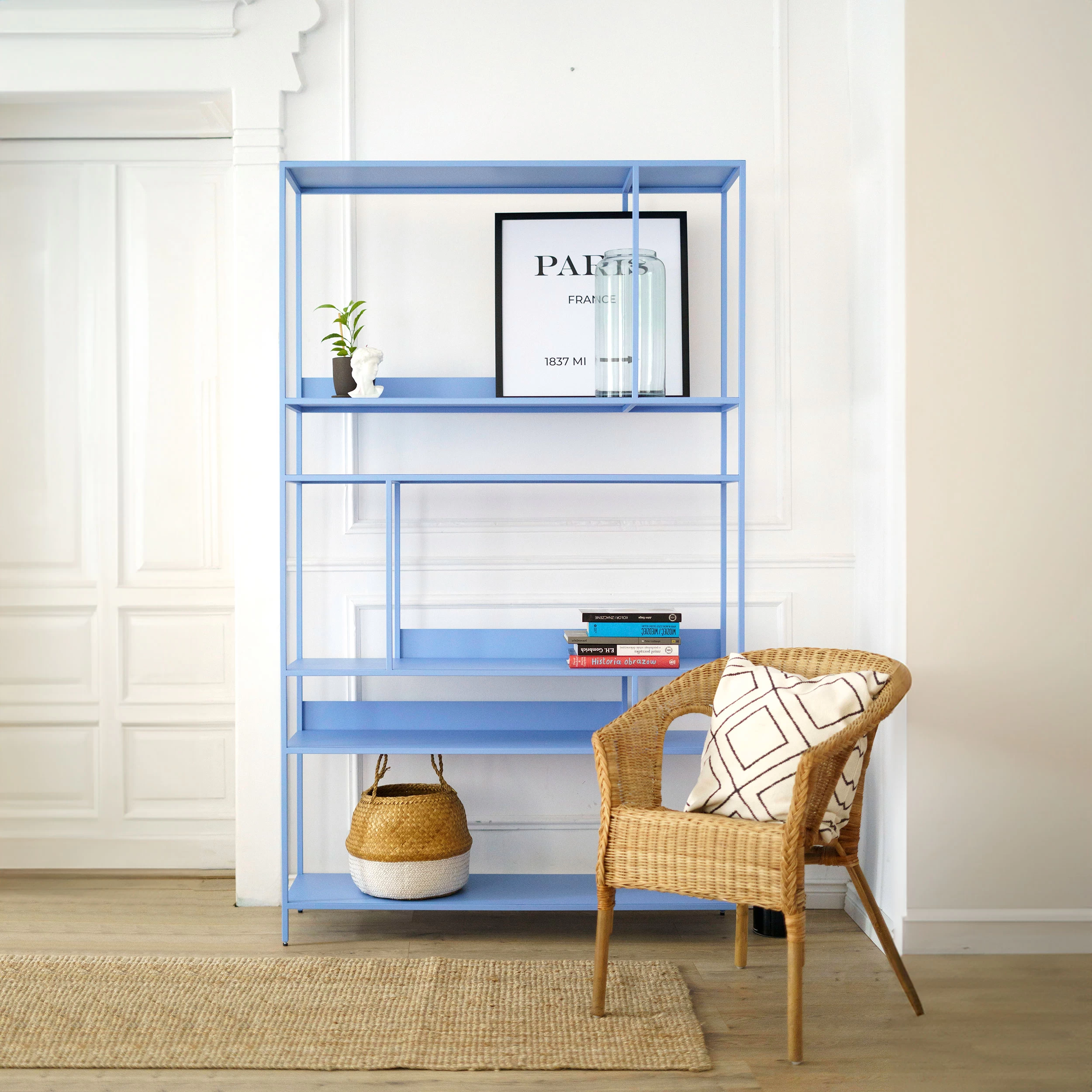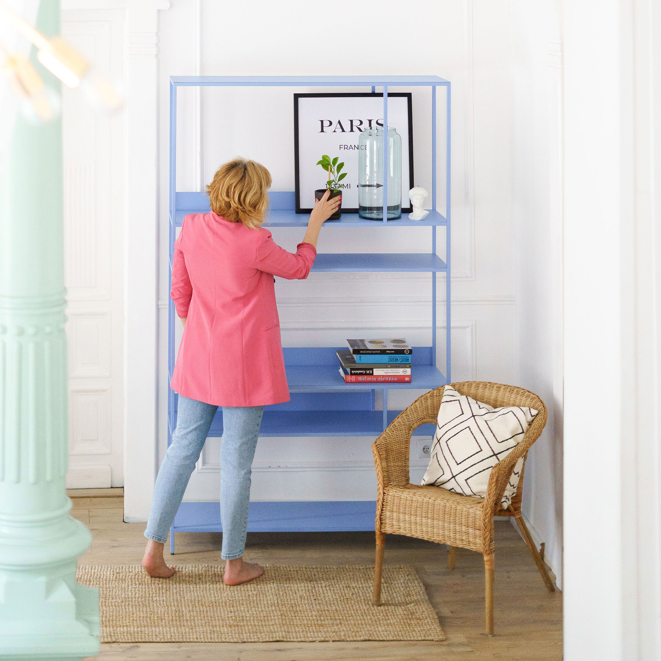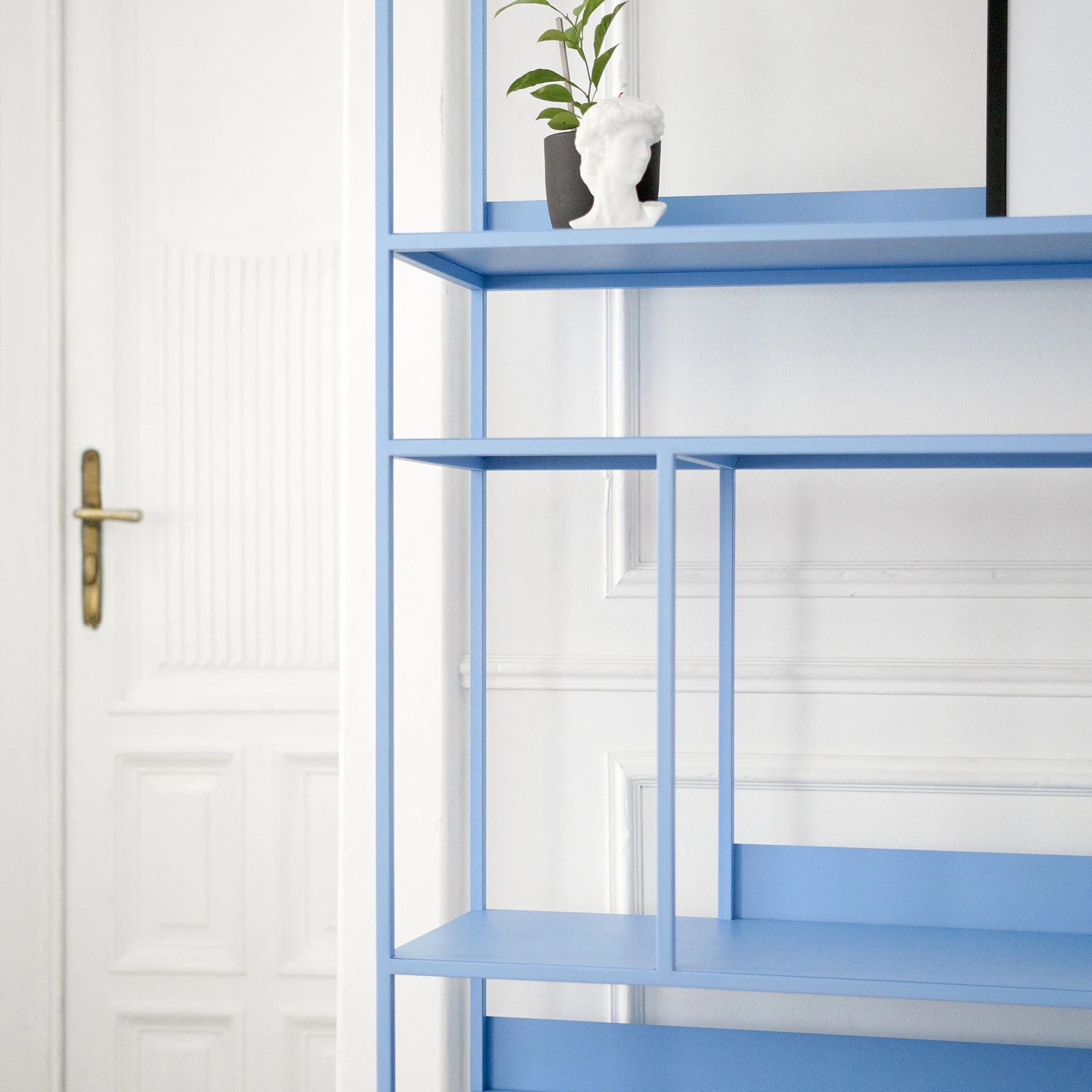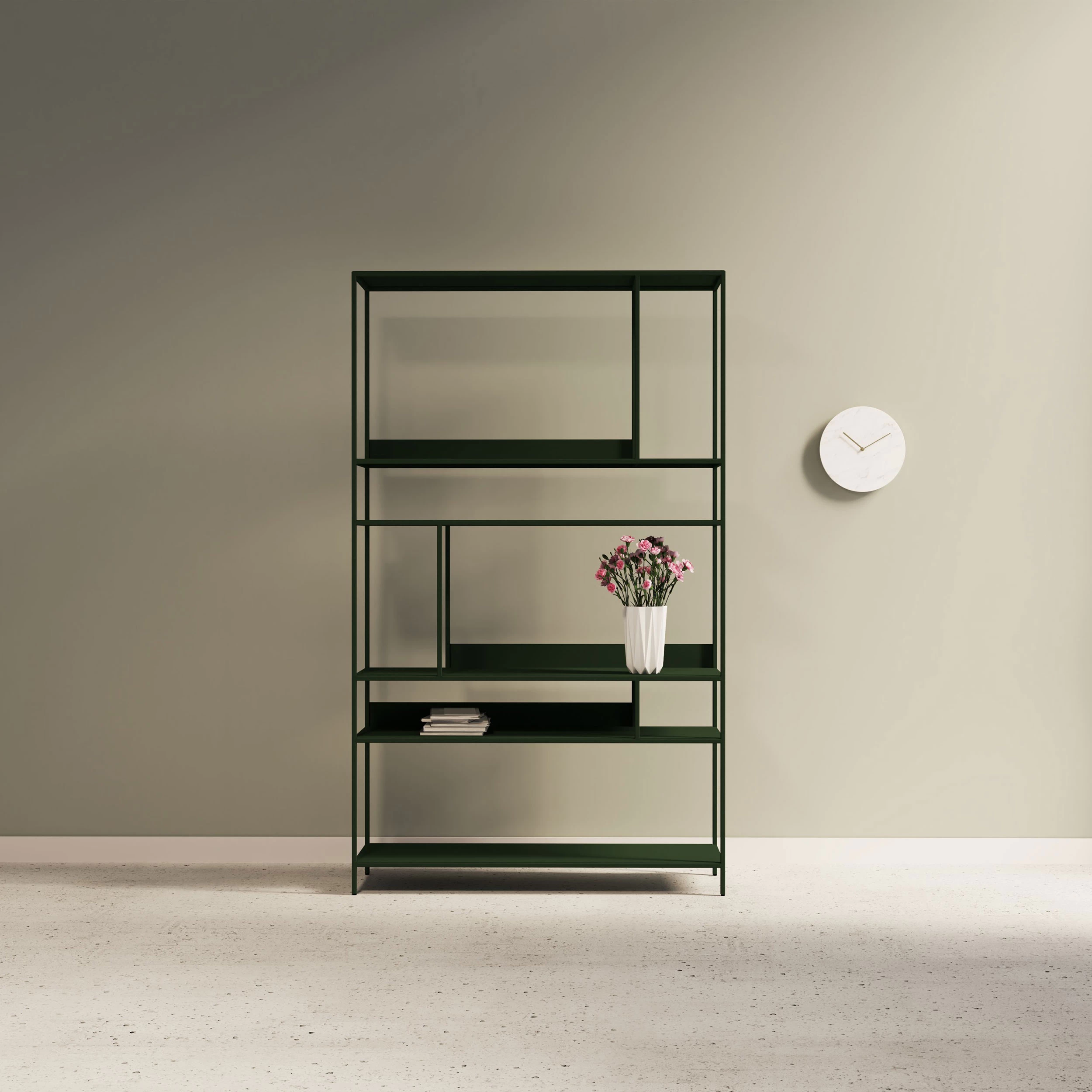 Floks 01 er mer enn oppbevaring – det er et grafisk element i rommet. De asymmetriske rommene og den åpne konstruksjonen gir et luftig uttrykk og innbyr til kreativ styling.