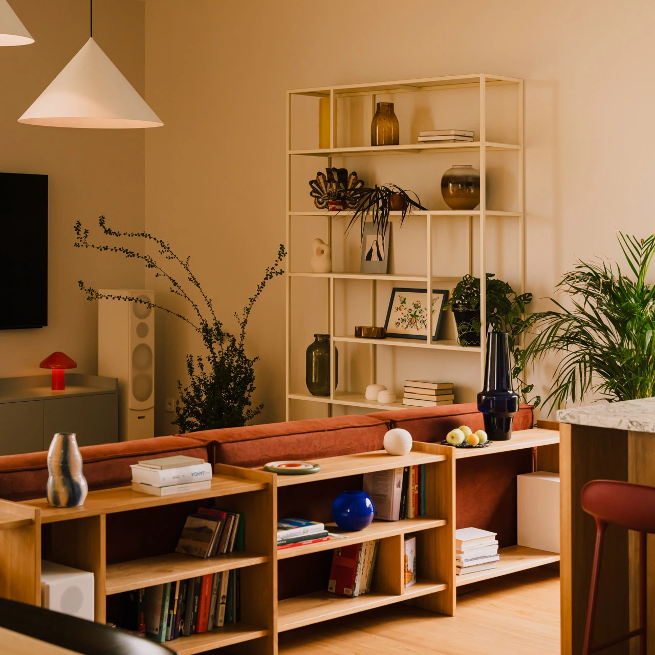AZALIA 01 er mer enn en reol – det er et møbel som setter et levende preg på rommet. De asymmetriske feltene skaper rytme og gir plass til bøker, dekorasjoner og personlige gjenstander, samtidig som de tilfører en følelse av bevegelse og balanse.