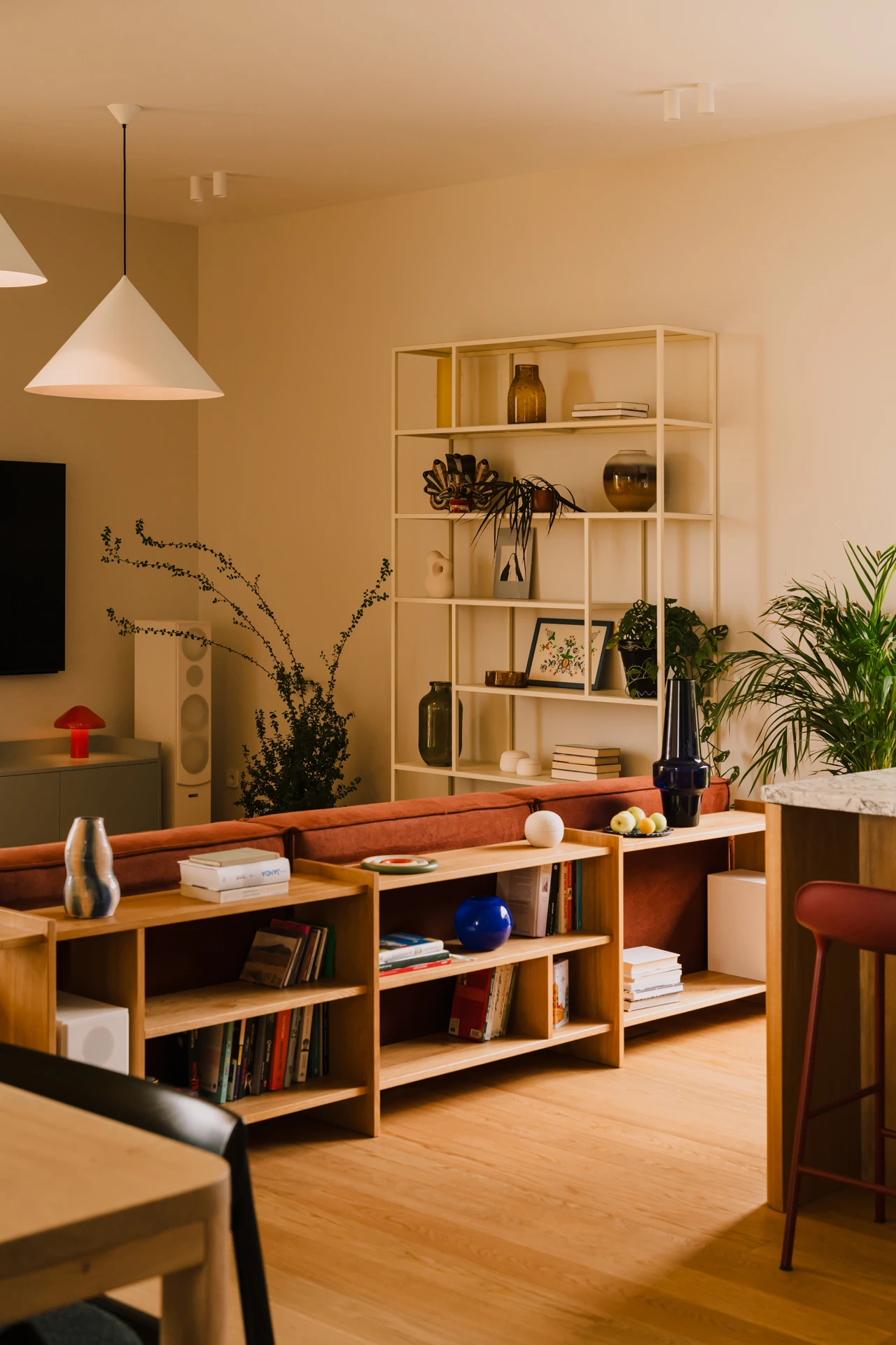 Dette er en reol som forener oppbevaring med uttrykk, og inviterer til et rom hvor linjer og former skaper ro og nærvær – i tråd med filosofien til Windes.