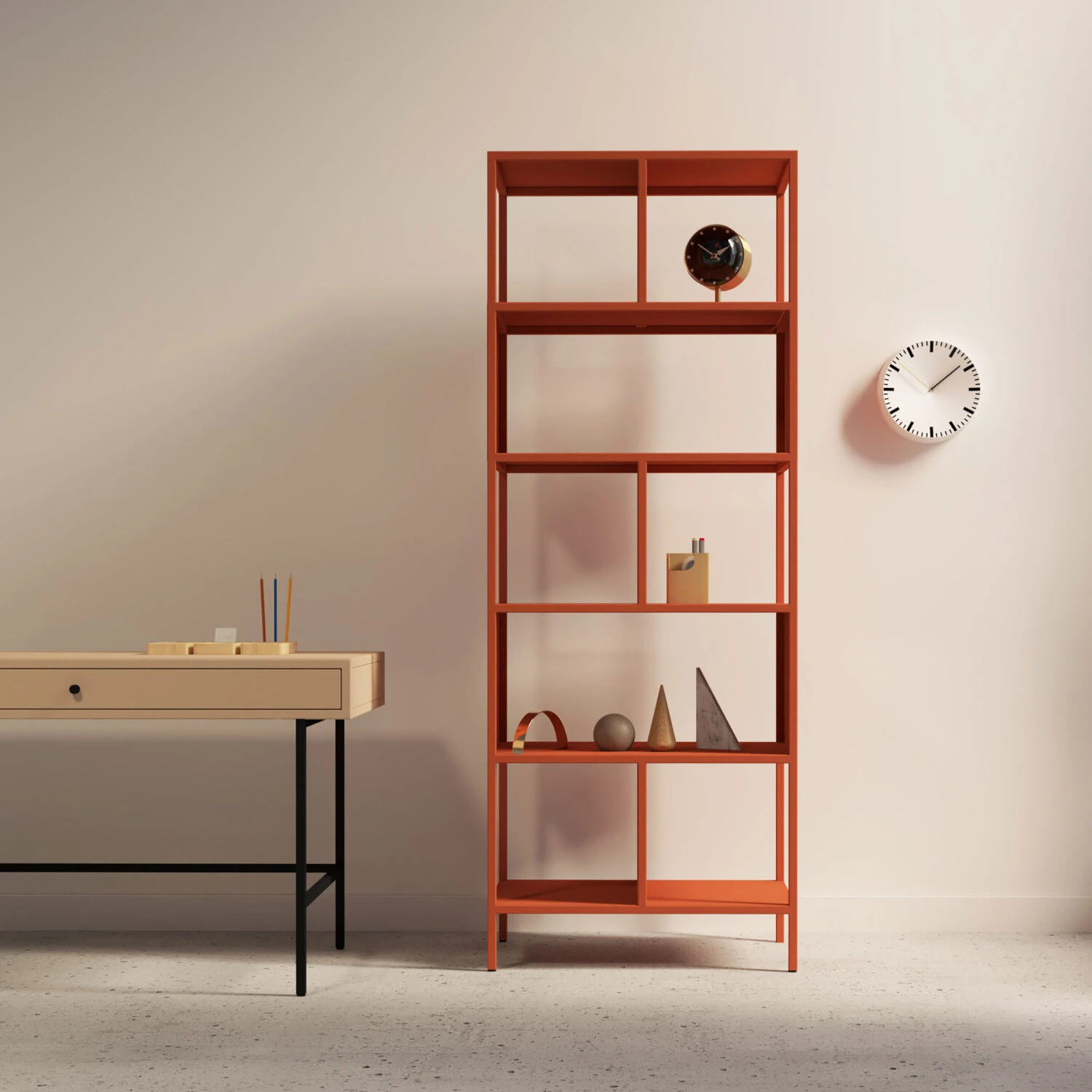 LILUM 04 er skapt for deg som verdsetter balanse og enkelhet. De symmetriske hyllene gir et ryddig uttrykk og rom for bøker, dekor og hverdagslige ting – uten å forstyrre helheten.