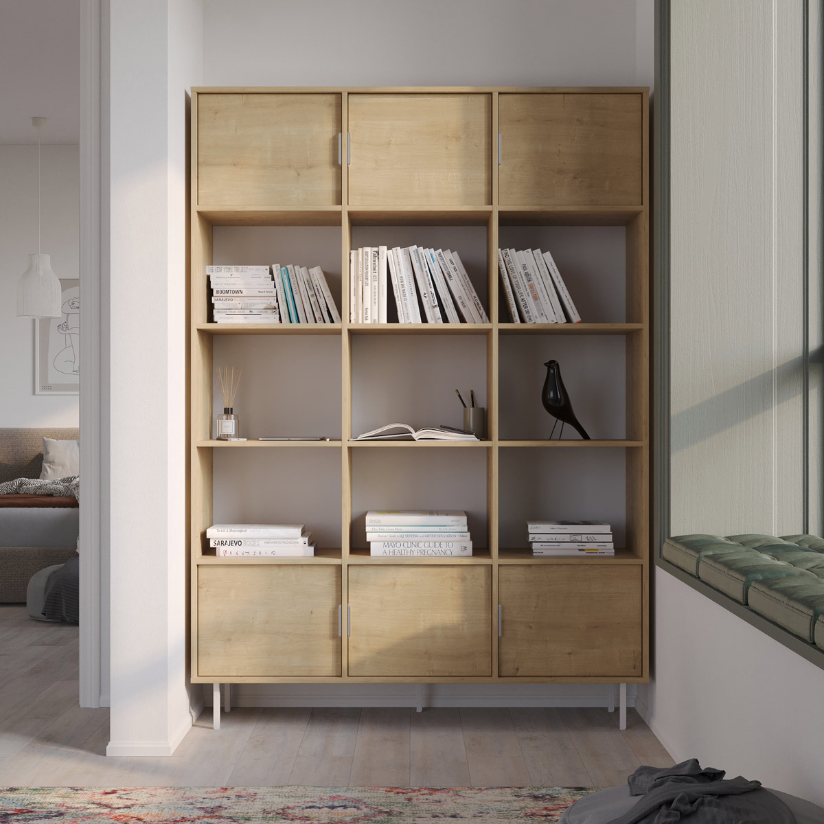 SIGI SRWPRO3 er en stor og funksjonell reol som kombinerer oppbevaring og utstilling på elegant vis. Perfekt til kontorer, klasserom, biblioteker, stuer og ungdomsrom hvor du trenger både oversikt og kapasitet.