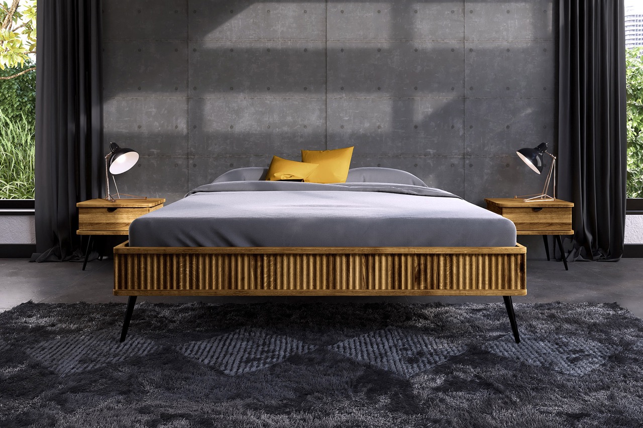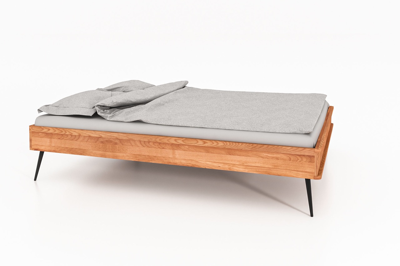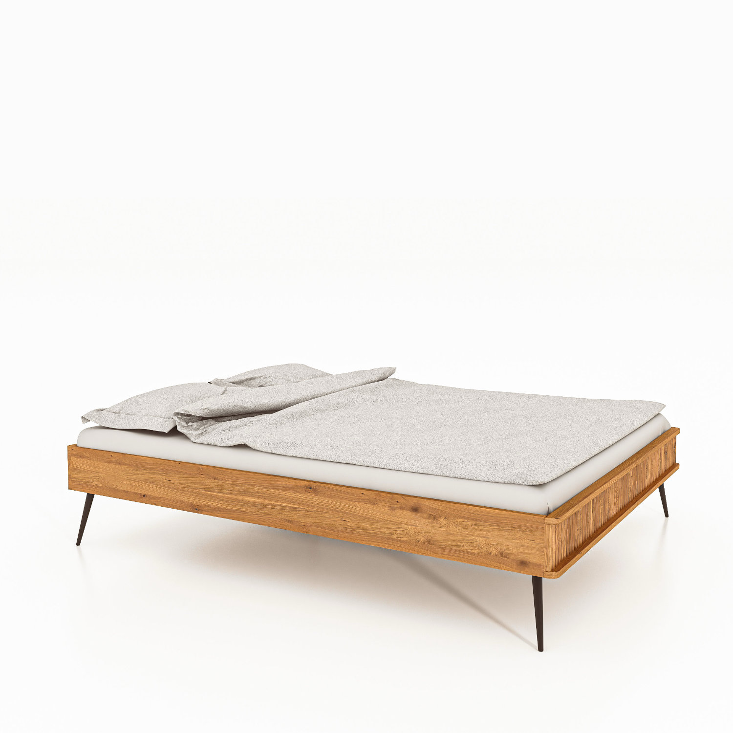 KULA-sengen er skapt for det enkle soverommet, der naturlige materialer og rolig estetikk får stå i sentrum. Den oljede rammen i massivt tre uten hodegavl fremhever de rene linjene og gir et harmonisk uttrykk, mens de sorte metallbena løfter møbelet og tilfører letthet.