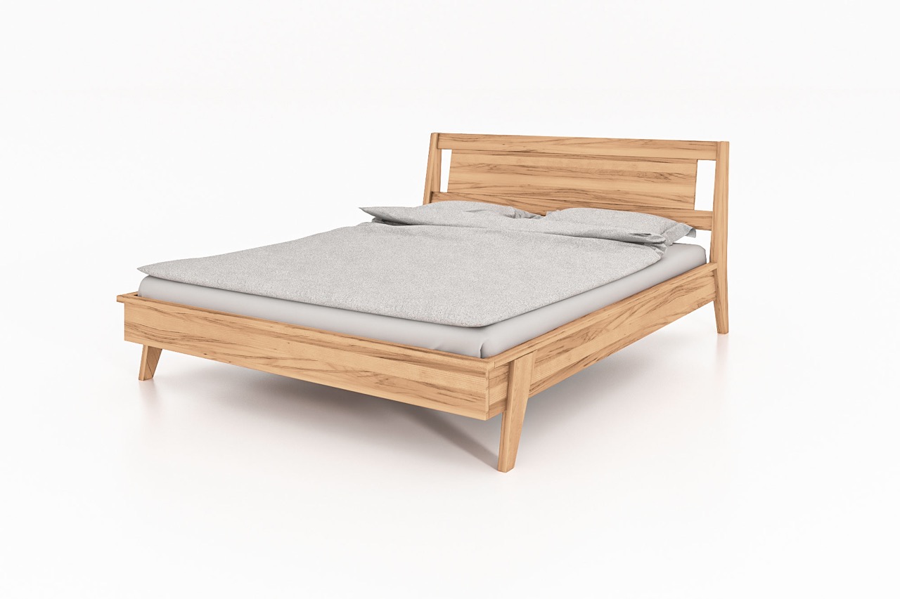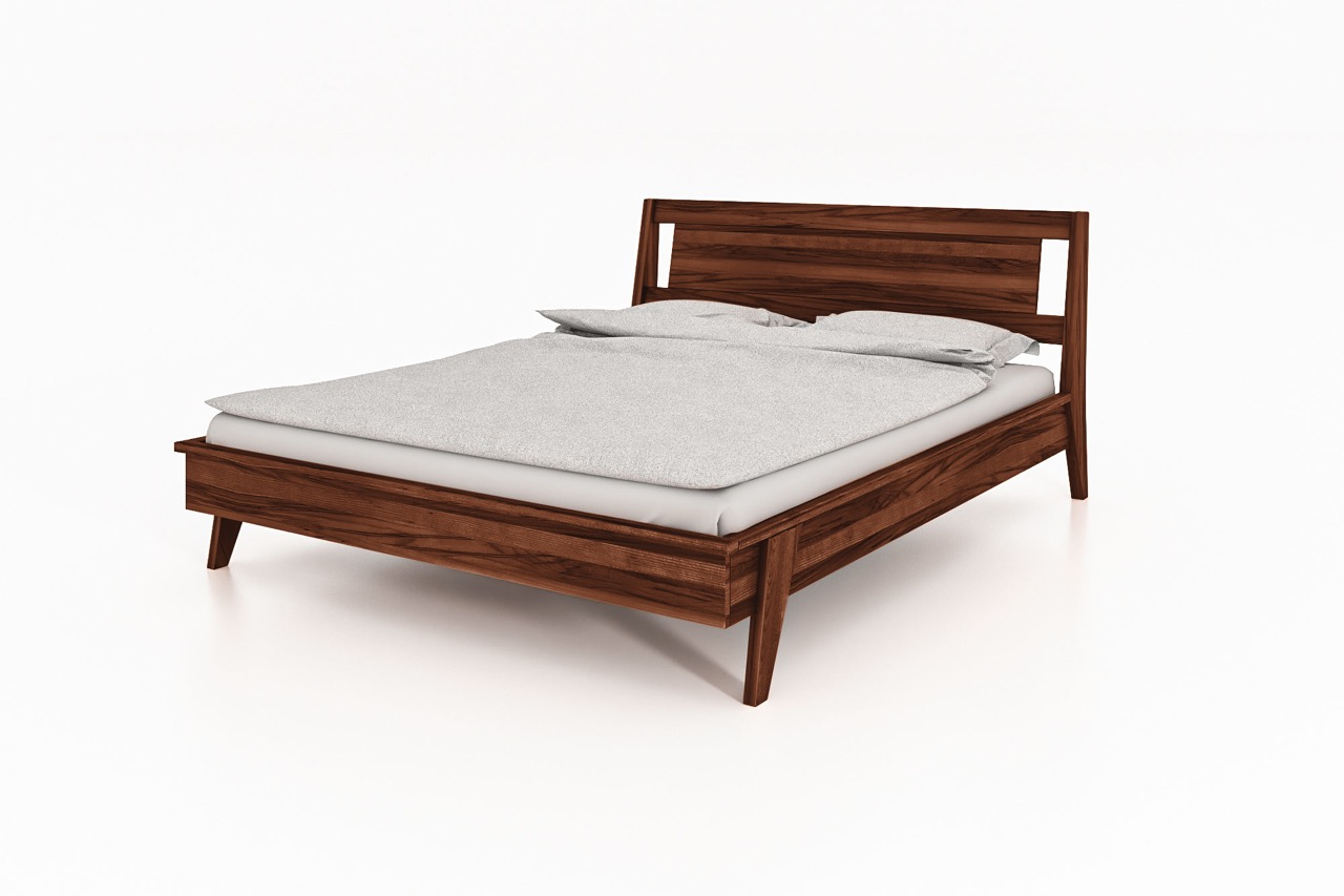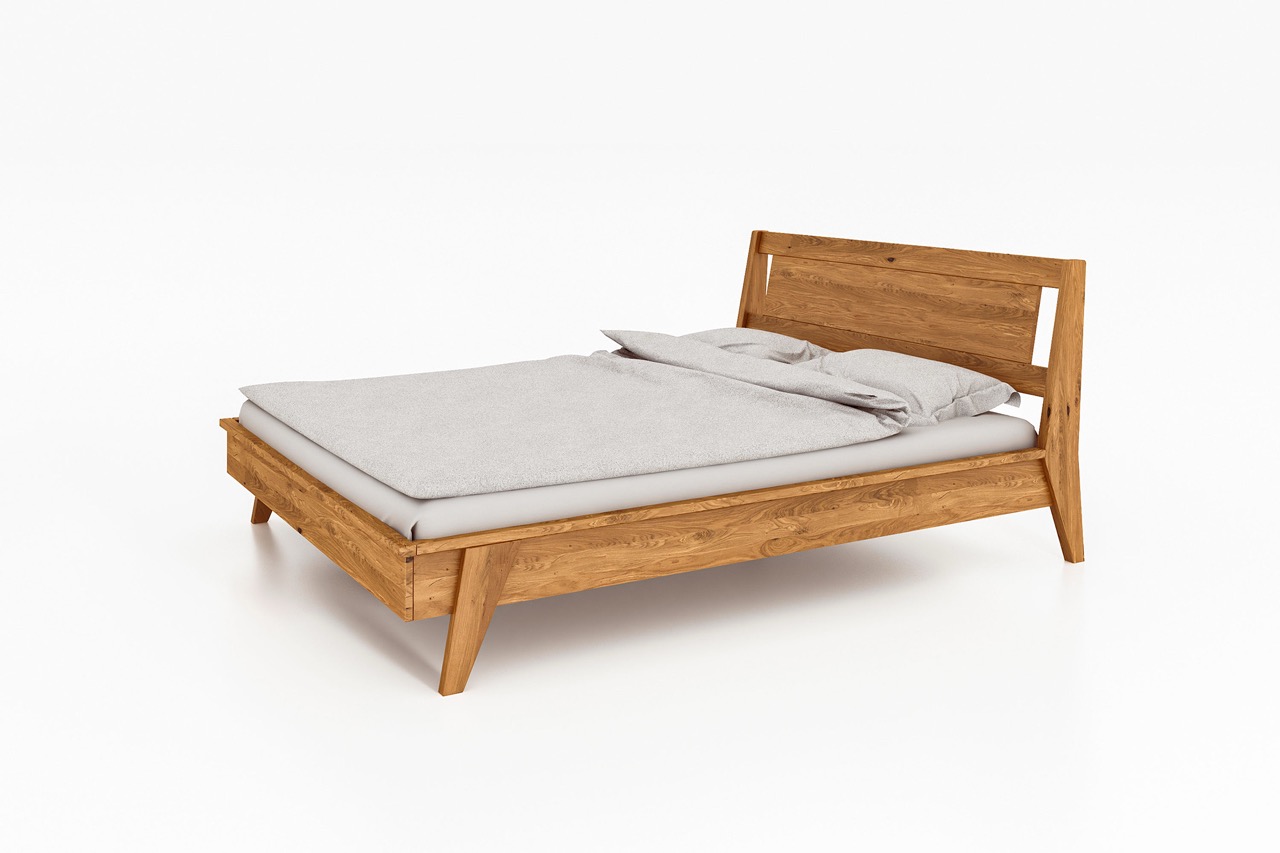 Seng RETRO forener estetisk balanse med tidløs funksjonalitet. Designet er preget av skrå linjer og massive tredetaljer som gir en følelse av ro og naturlighet i soverommet.