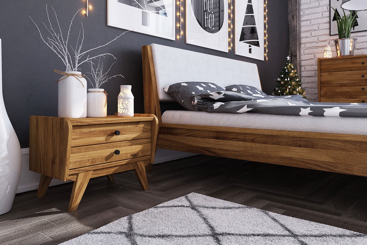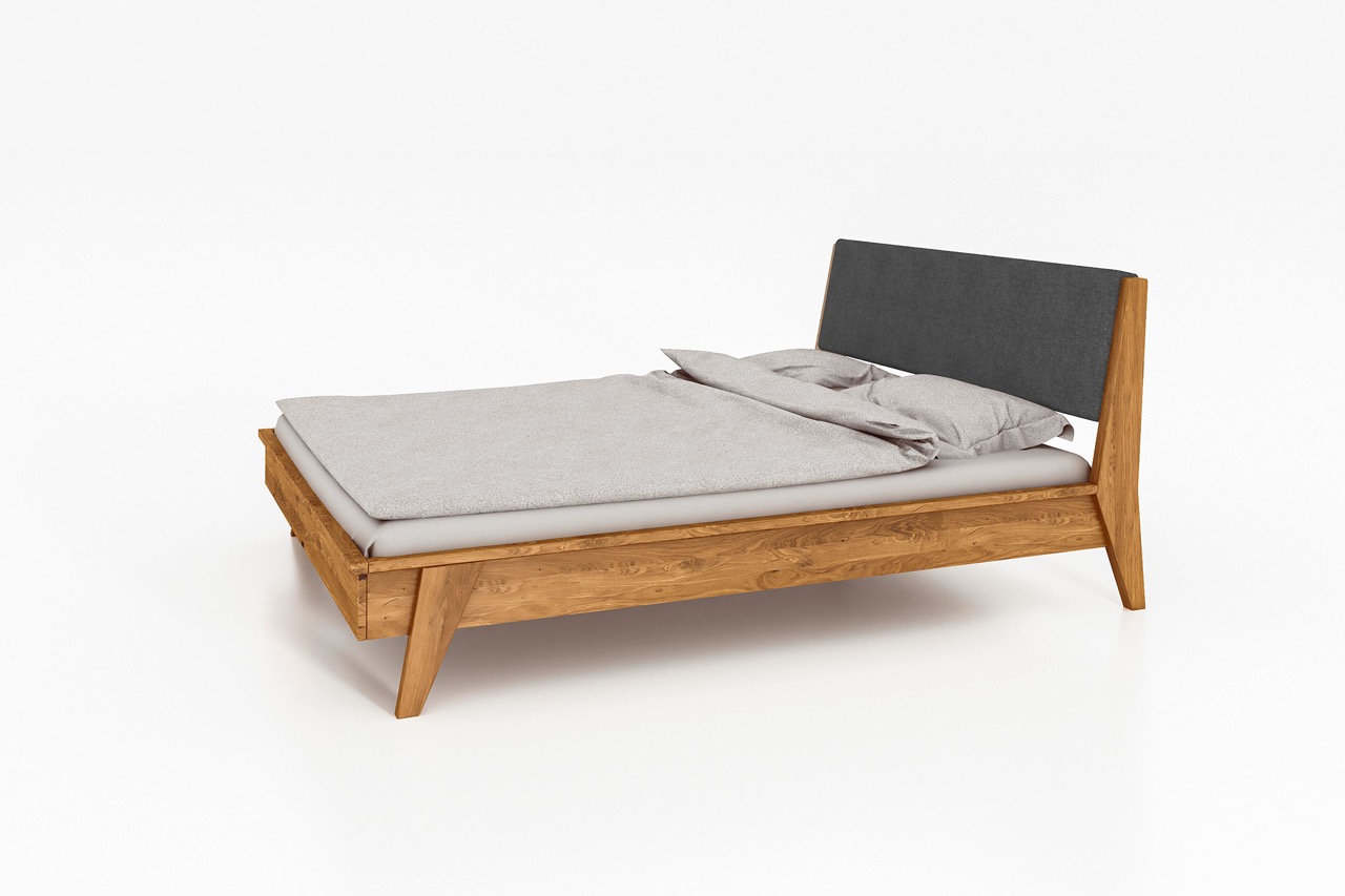 Seng RETRO kombinerer solid håndverk med myke linjer og et rolig uttrykk. Den skråstilte, polstrete gavlen tilfører sengen en moderne varme, mens stellet i massivt, oljet tre gir en følelse av tyngde og trygghet. Designet trekker tråder til fortidens eleganse – men fortolket i en enkel og nåtidig form.