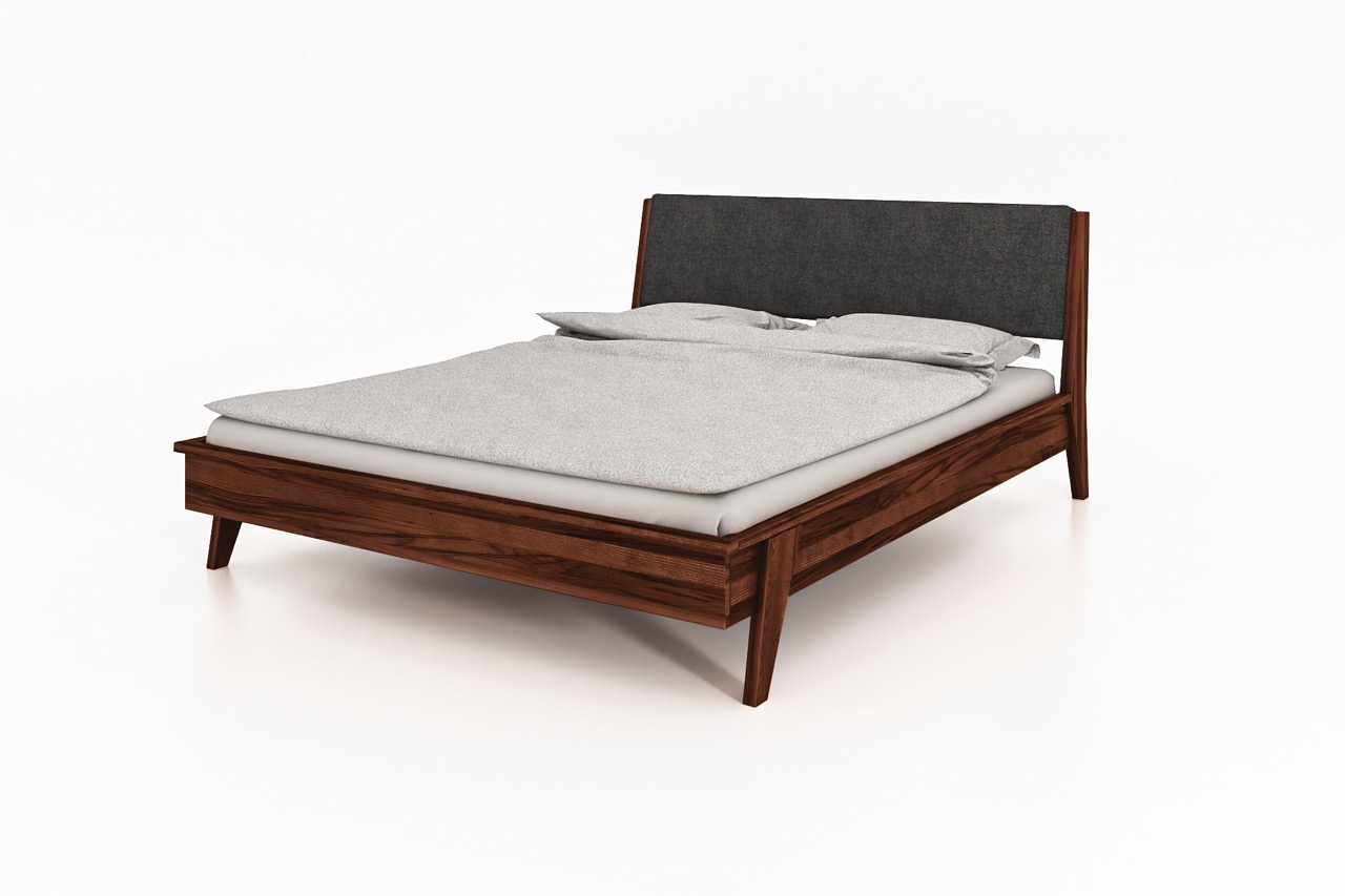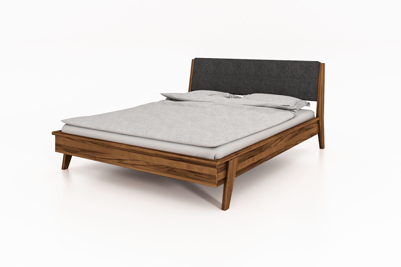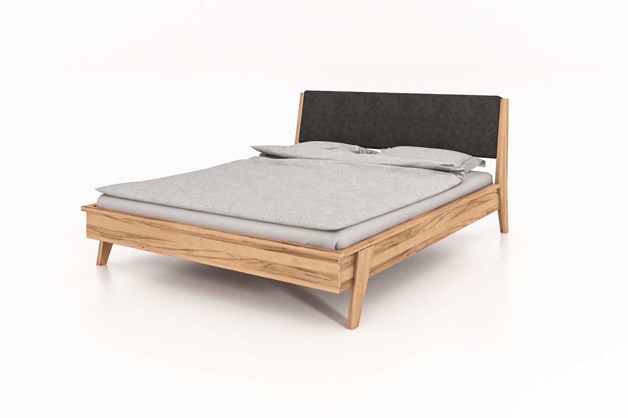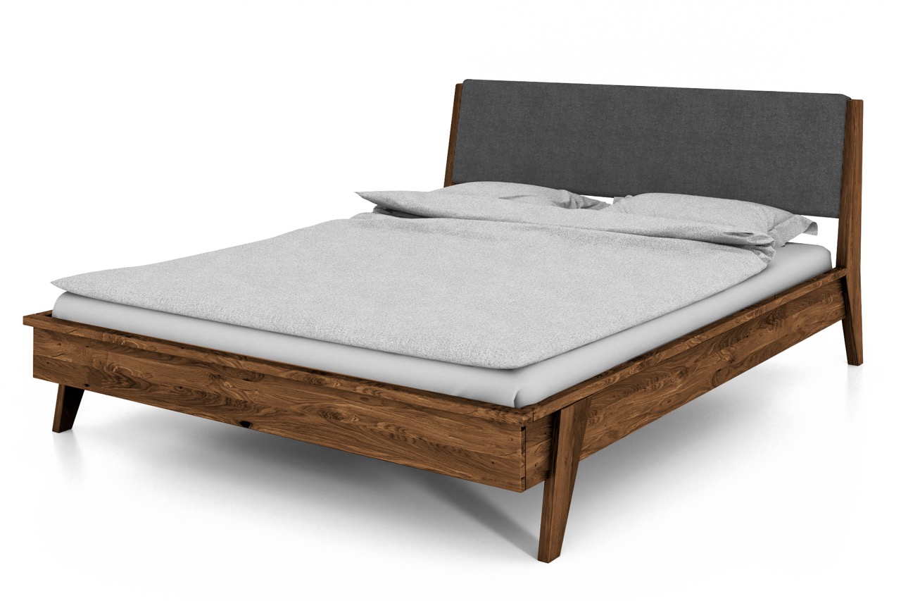 Seng RETRO – Med polstret gavl og skråstilte ben