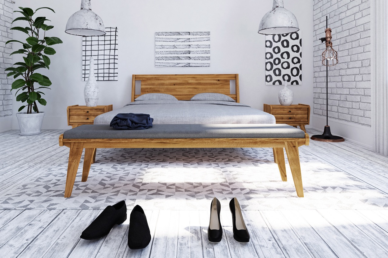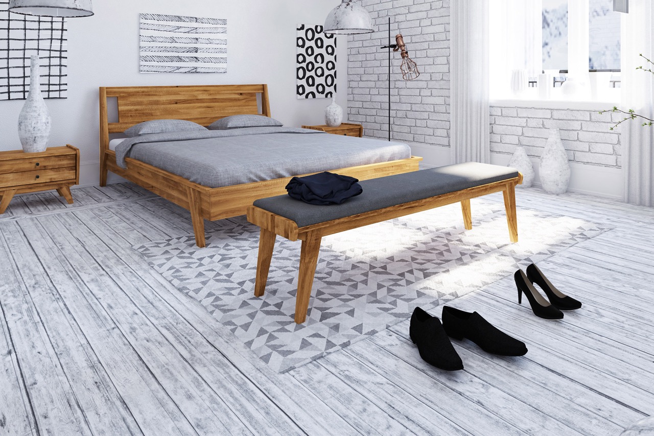 Sengebenk RETRO – Polstret benk med massivt trestell