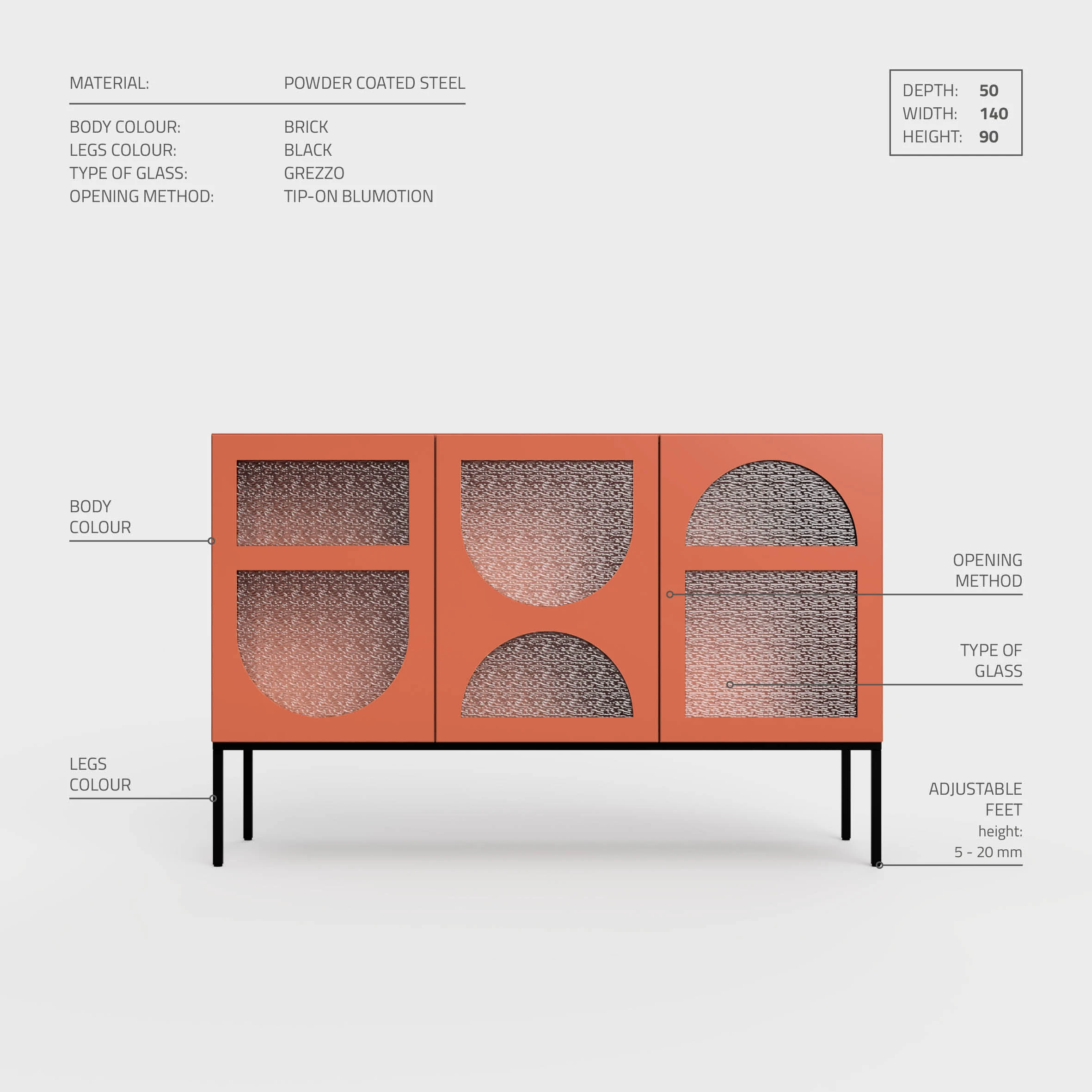 Du kan velge blant 40 farger og lage akkurat den skjenken som passer ditt hjem. Den leveres ferdigmontert, og overflaten er lett ĂĄ holde ren med bare en fuktig klut.